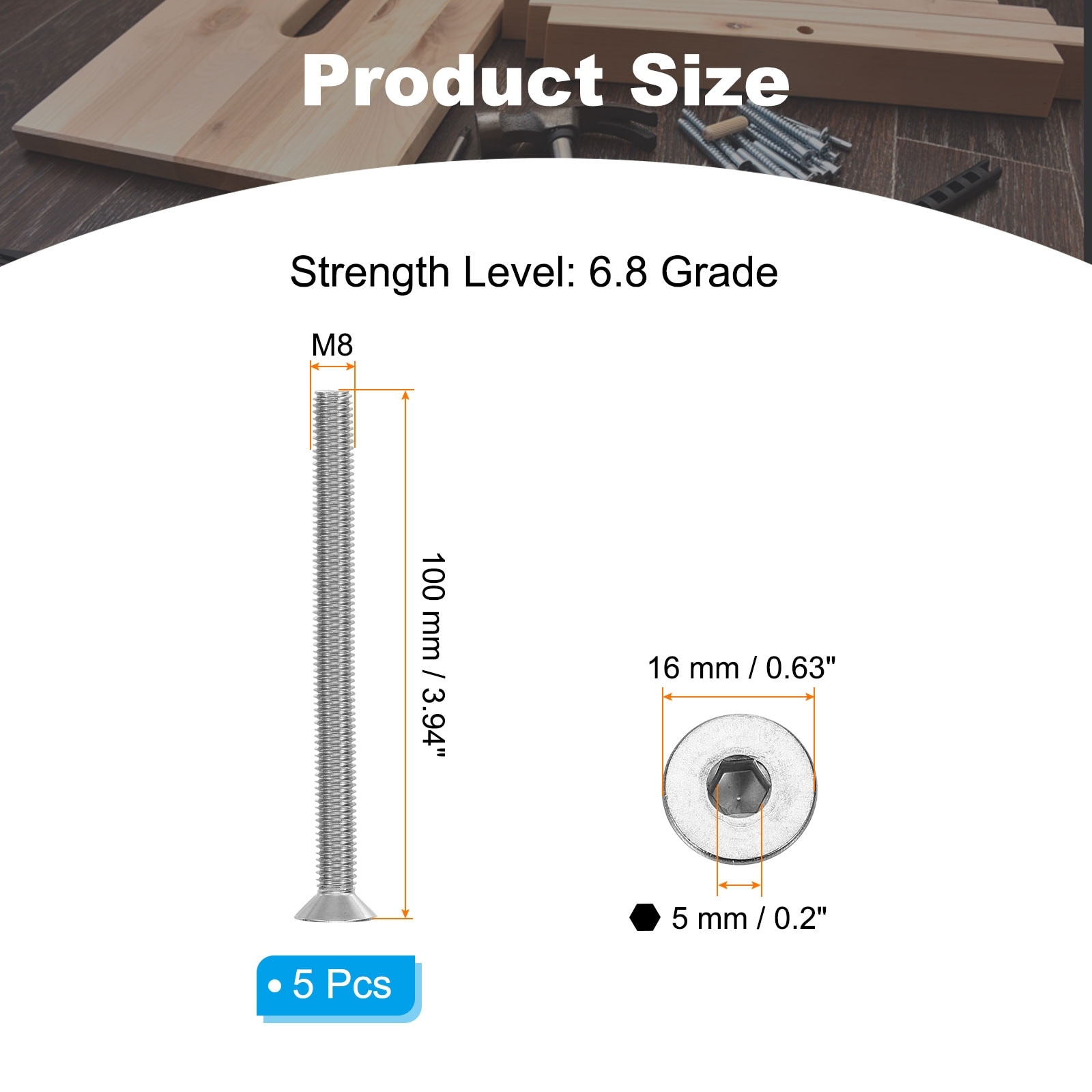 Flat Head Socket Cap Screws, 304 Stainless Steel Machine Screws Flat Countersunk Bolt Hex Socket Drive Fasteners Grade - Silver
