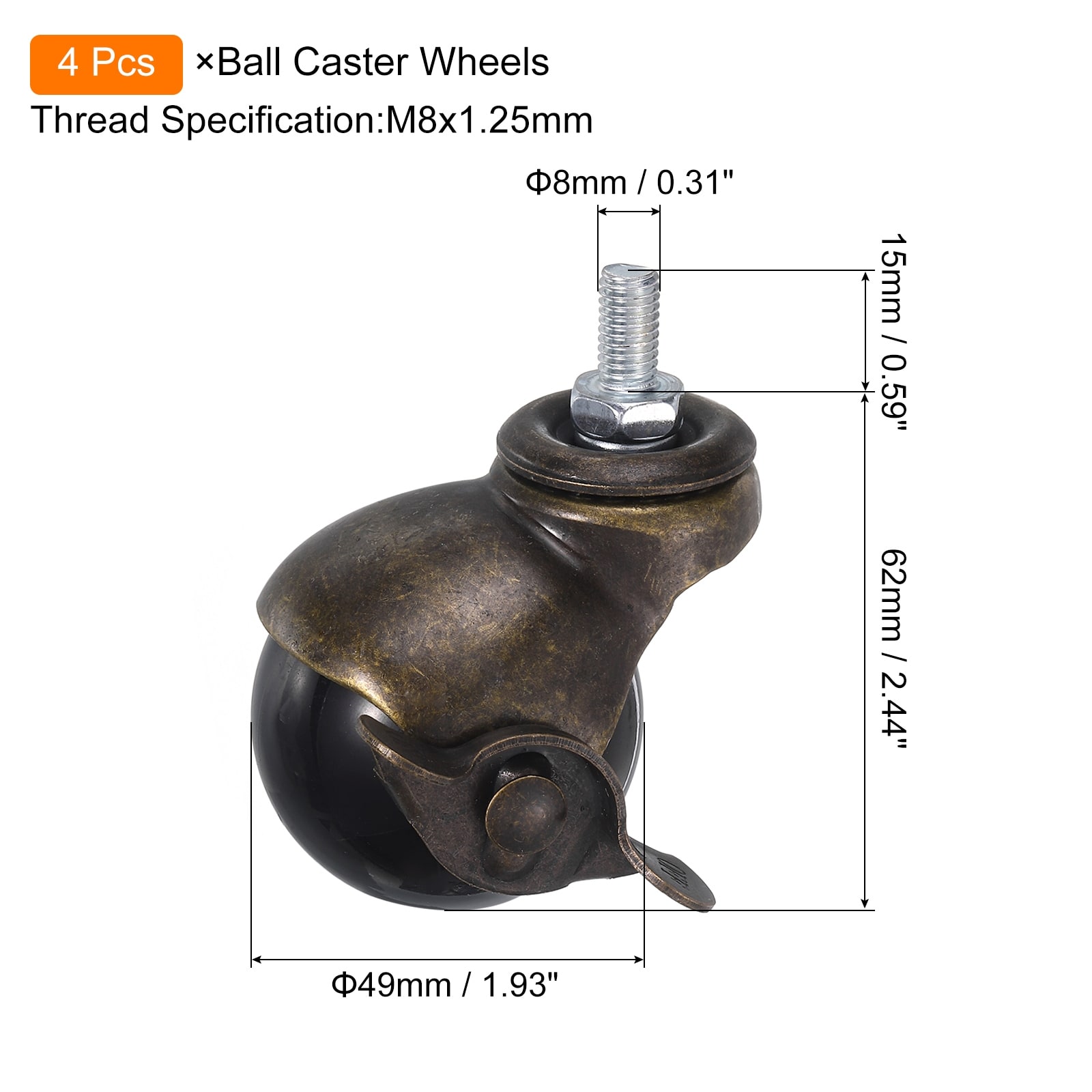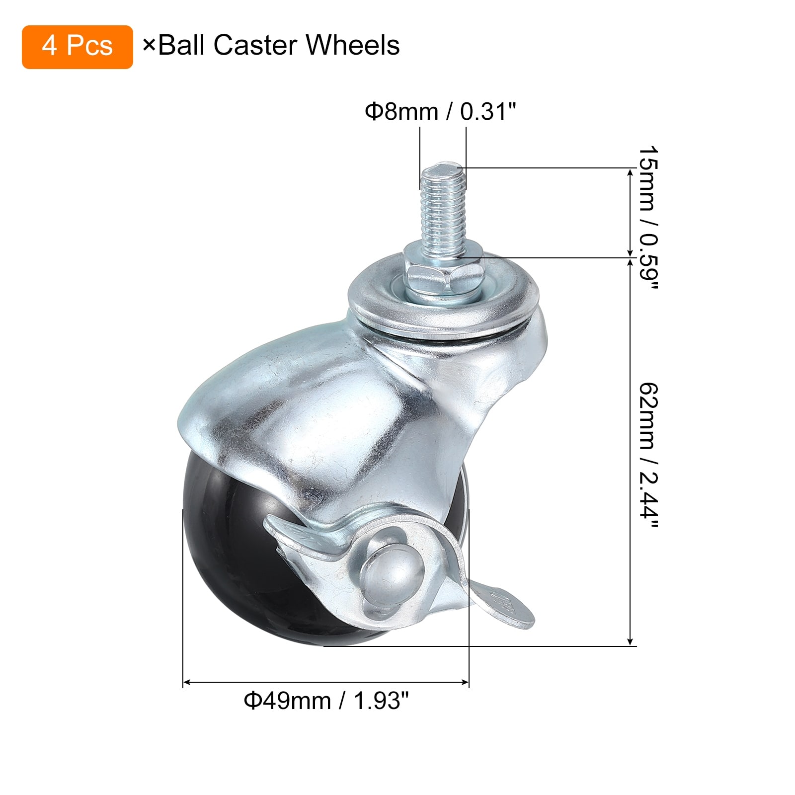 Ball Caster Wheels with Brake Threaded Stem Caster 360 Degree Rotatable Caster Wheels for Furniture