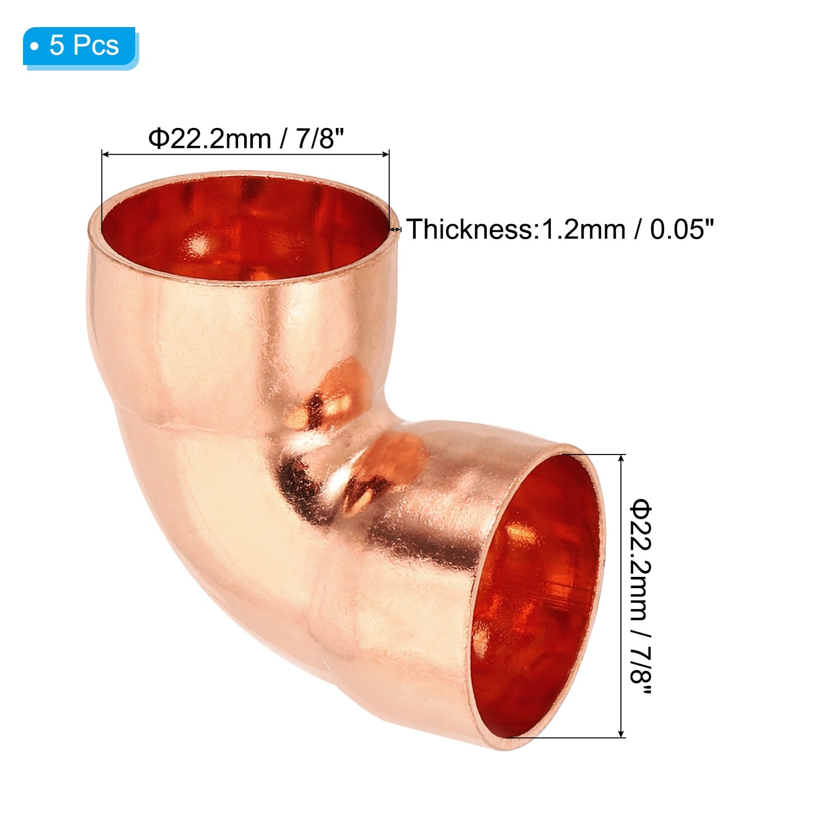 4Pcs 1/4"ID 0.8mm Thick Elbow Copper Fitting 90 Degree Solder Copper Tube - Copper Tone