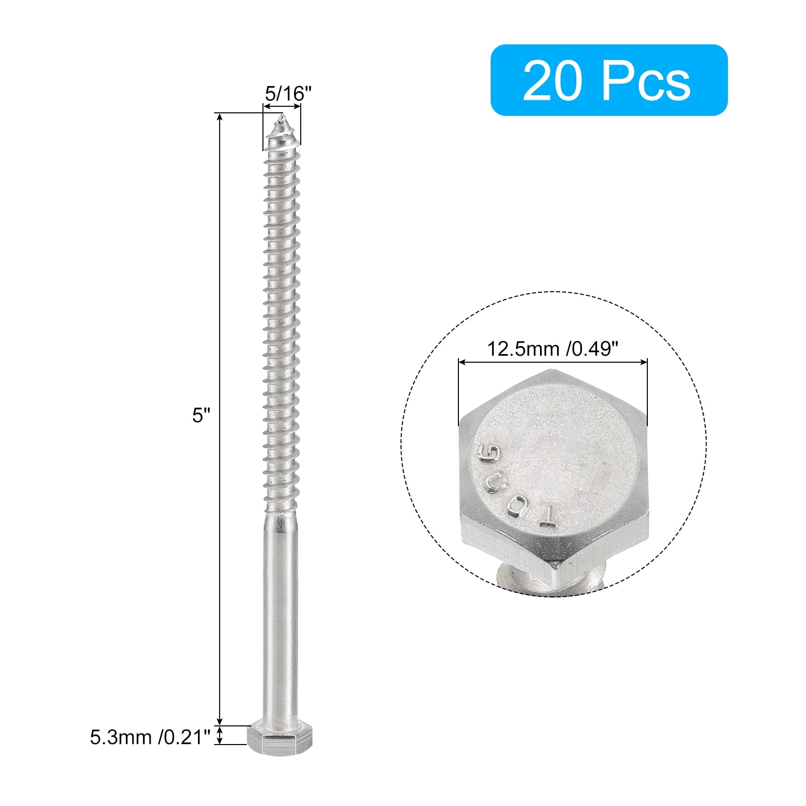 Hex Head Lag Screws Bolts, 304 Stainless Steel Thread Wood Screws