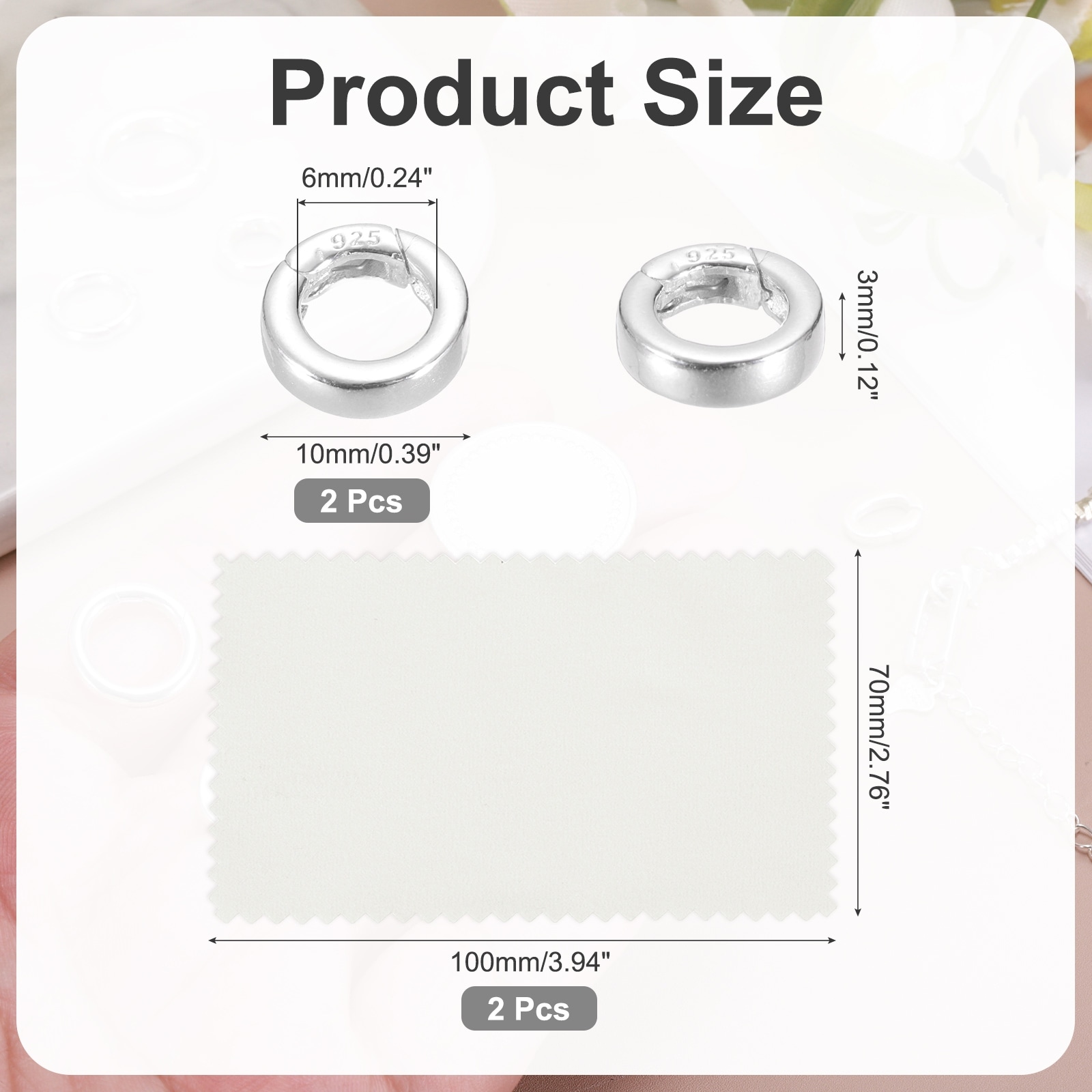 10mm 925 Sterling Silver Spring Gate Rings, 2Pcs Plat Round Clasps, Silver Tone - Silver Tone