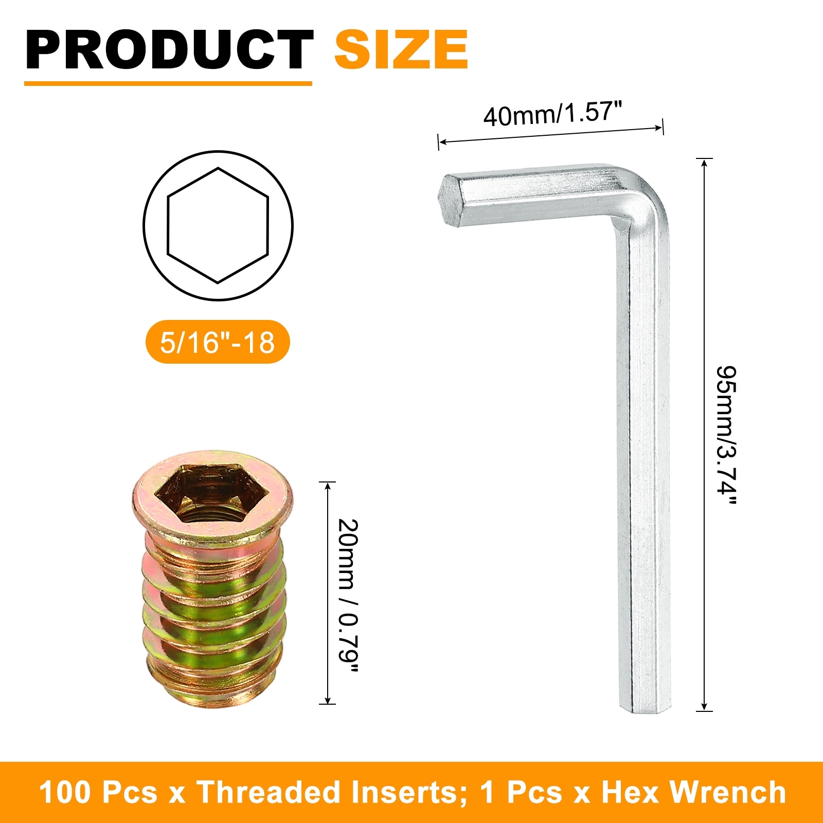 Threaded Insert for Wood, Threaded Studs 15mm Length