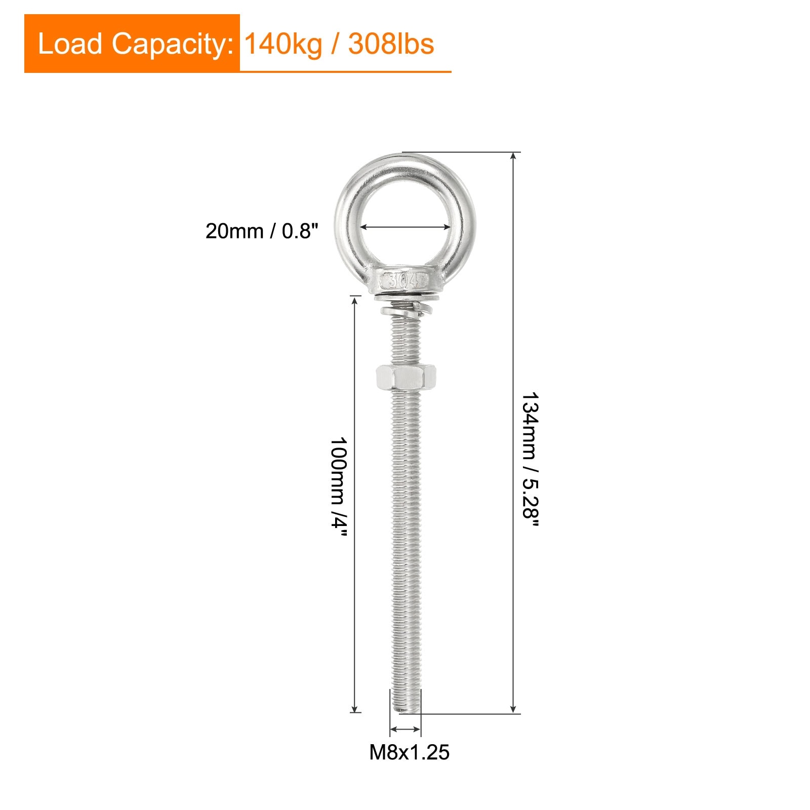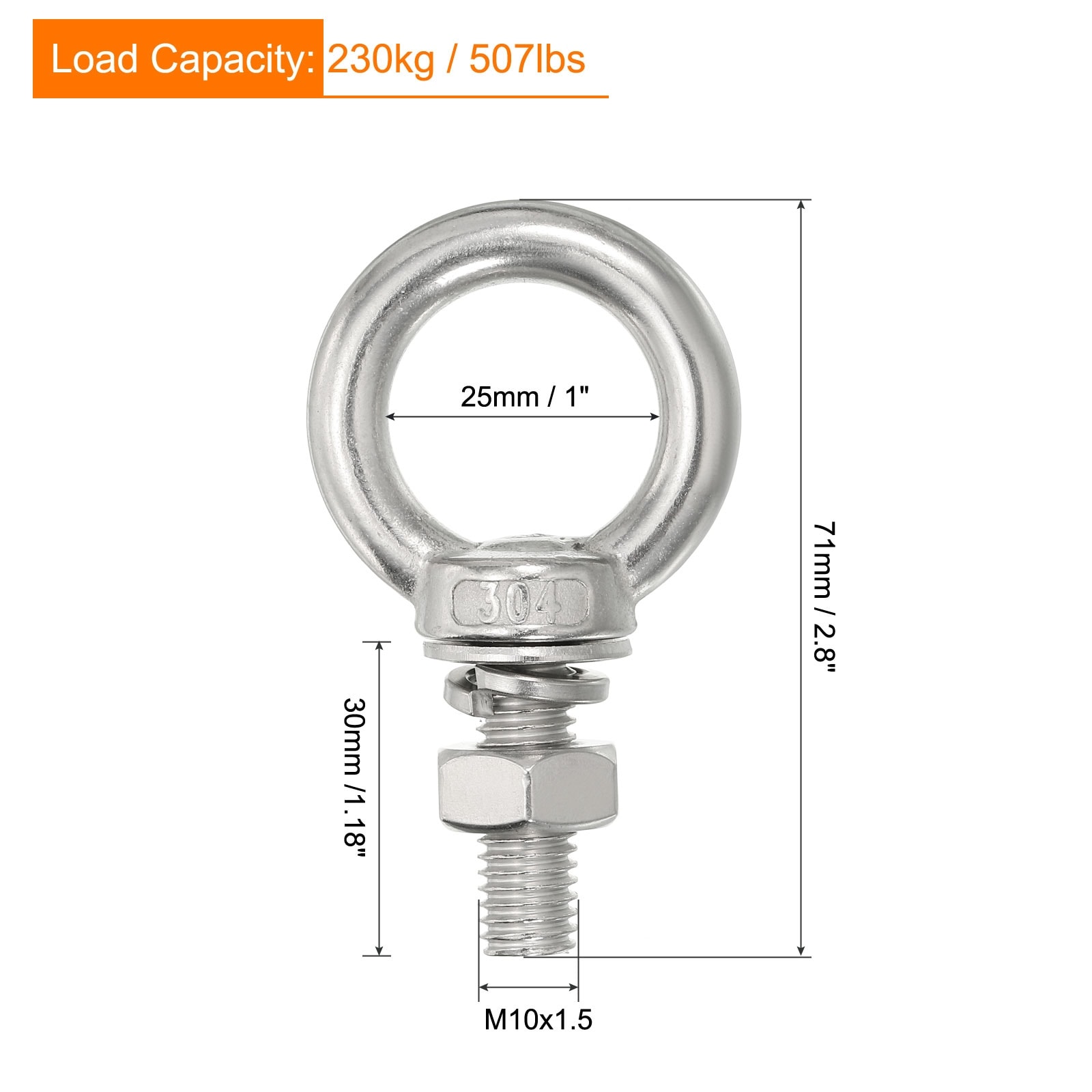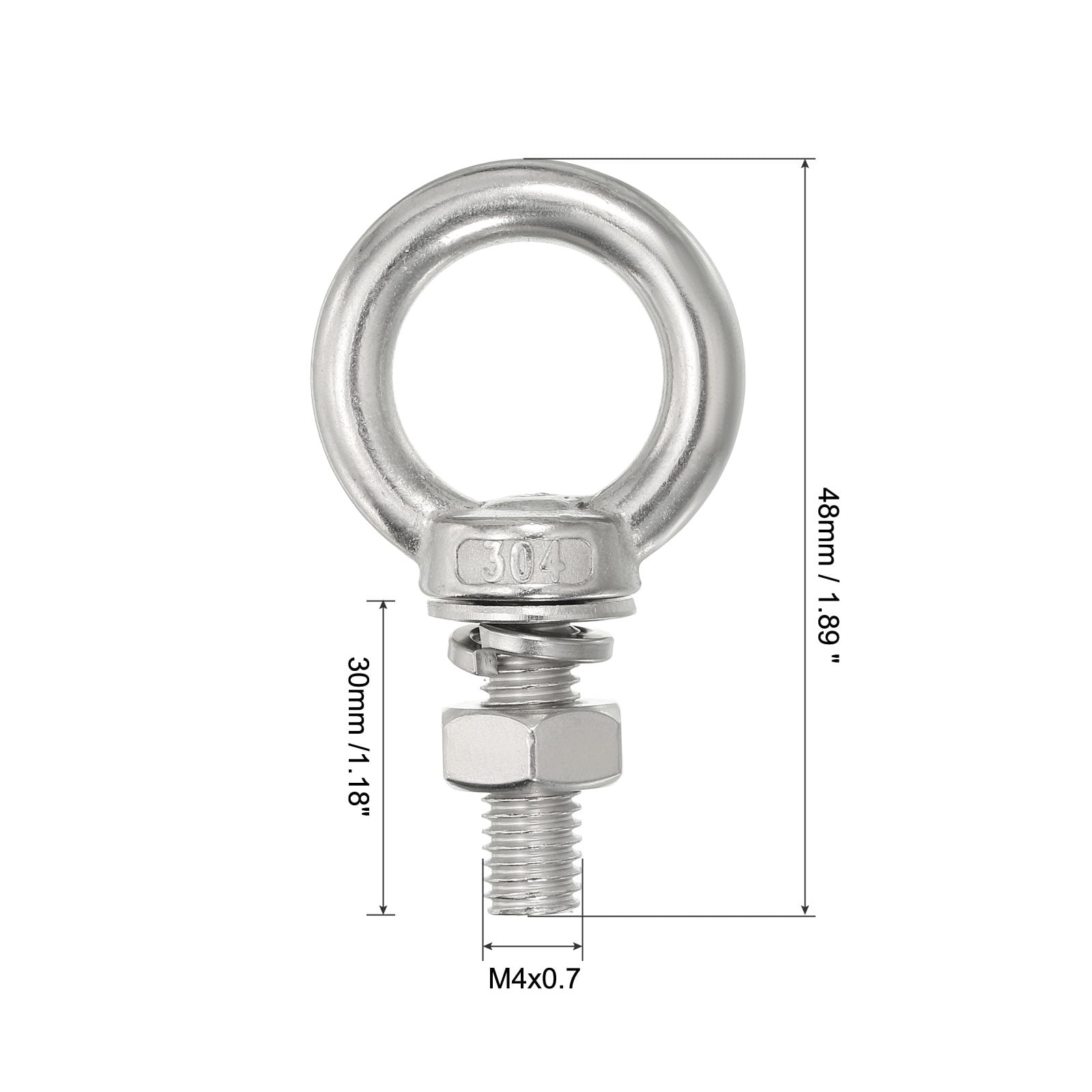 Stainless Steel Eye Bolt Threaded Screw Eyebolt Shoulder Ring with Nuts Washers for Lifting Hanging