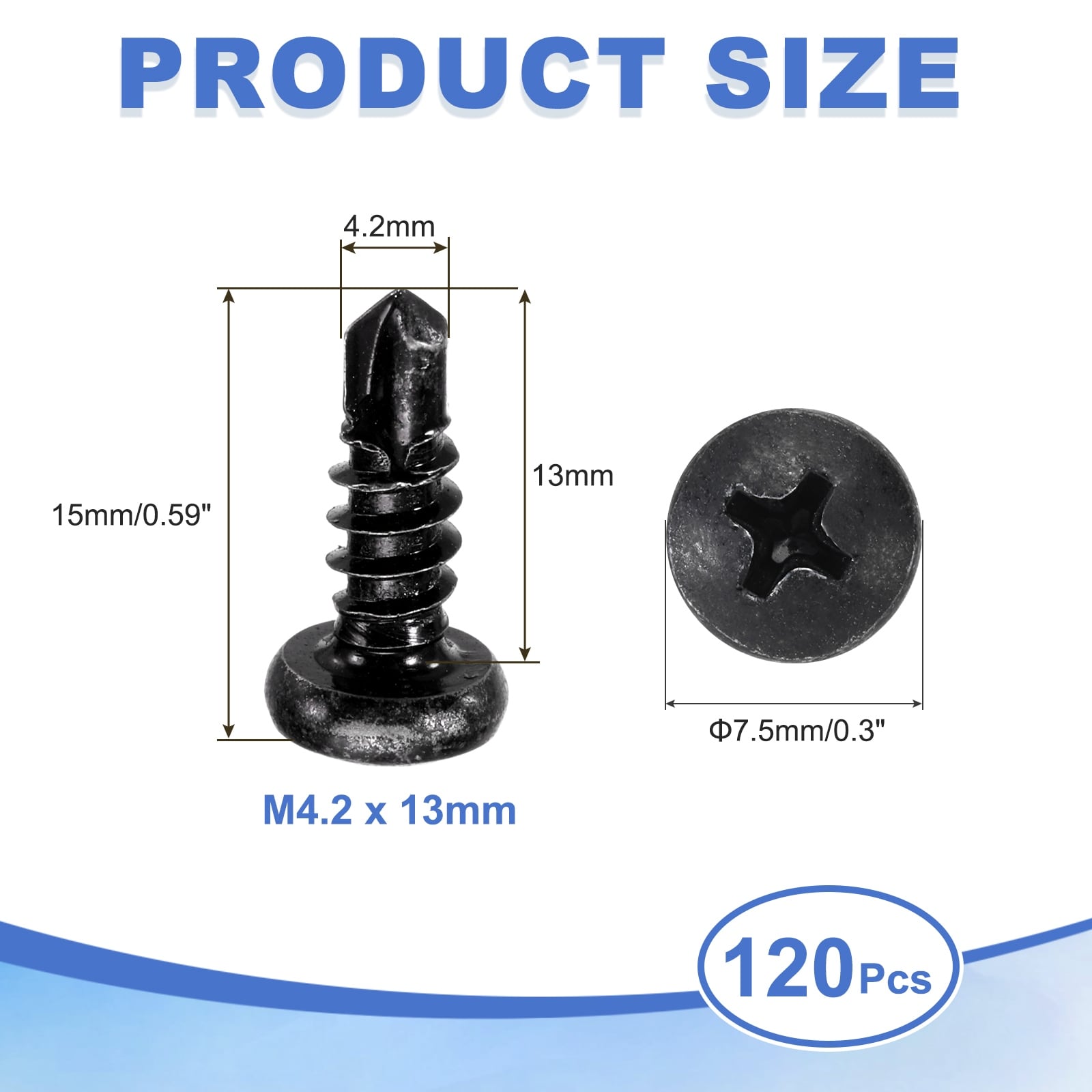 Pan Head Self Tapping Screws, Galvanized Carbon Steel Self Drilling Screws for Metal Sheet Metal Screw - Black
