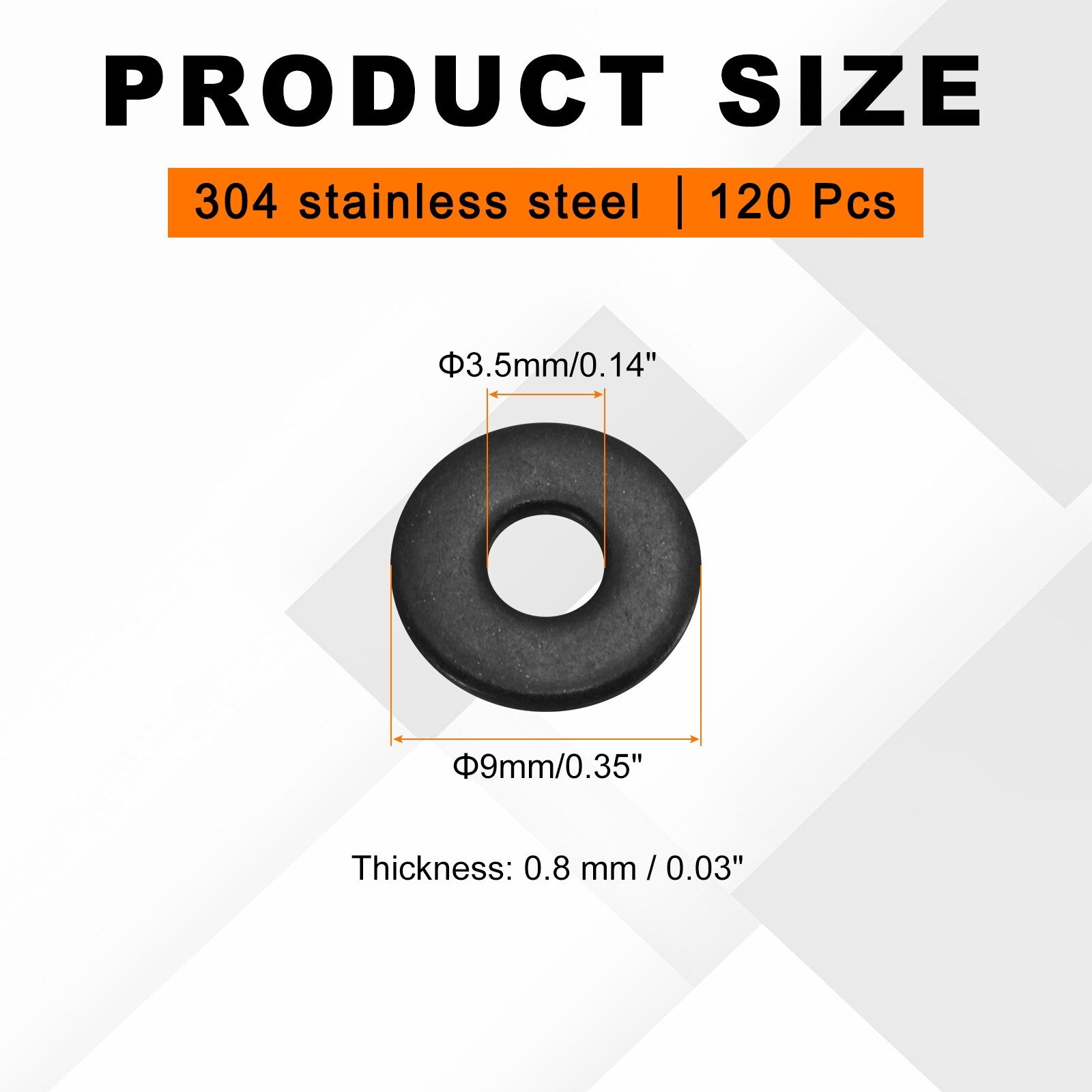 Flat Washers, 304 Stainless Steel Metal Washers Black Zinc Sealing Crush Rings for Screws and Bolts