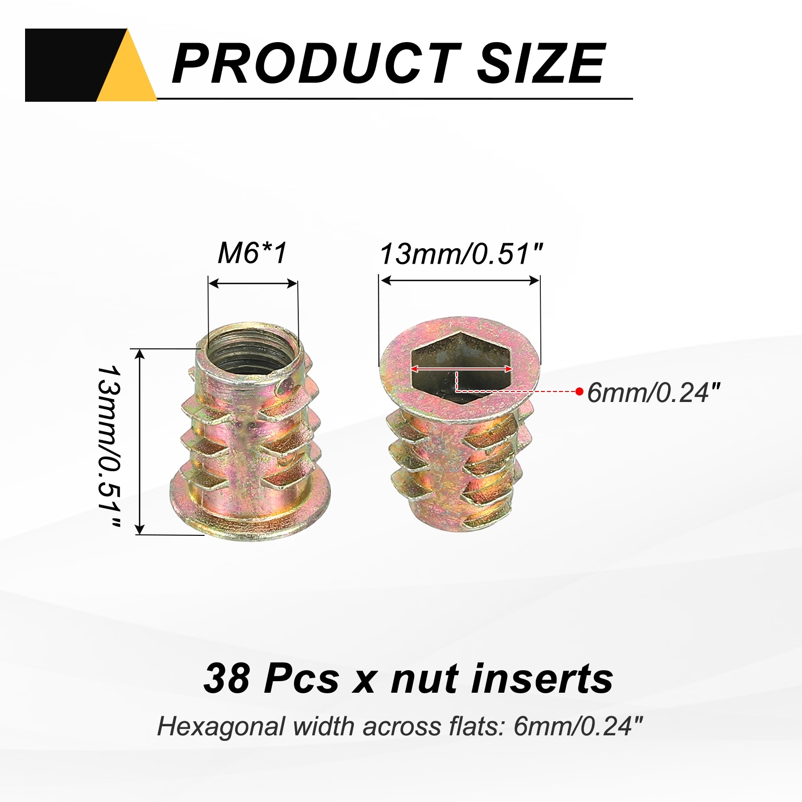 Threaded Inserts Nuts, Socket Drive Nut Inserts for Wood Screws Furniture Screw in Nuts Bolt Fastener