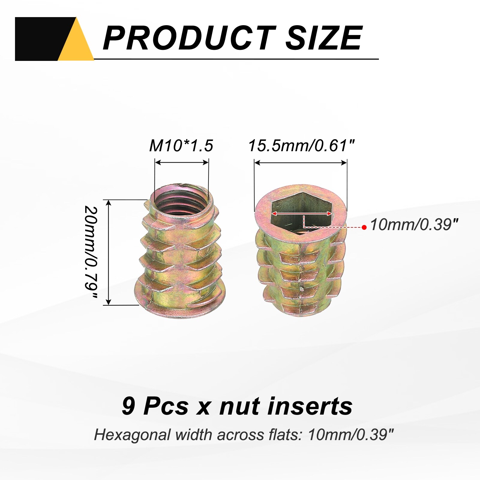 Threaded Inserts for Wood, Zinc Alloy Thread Inserts Nuts Hex Socket Drive Screw for Furniture, Cabinet, Tables and Chairs