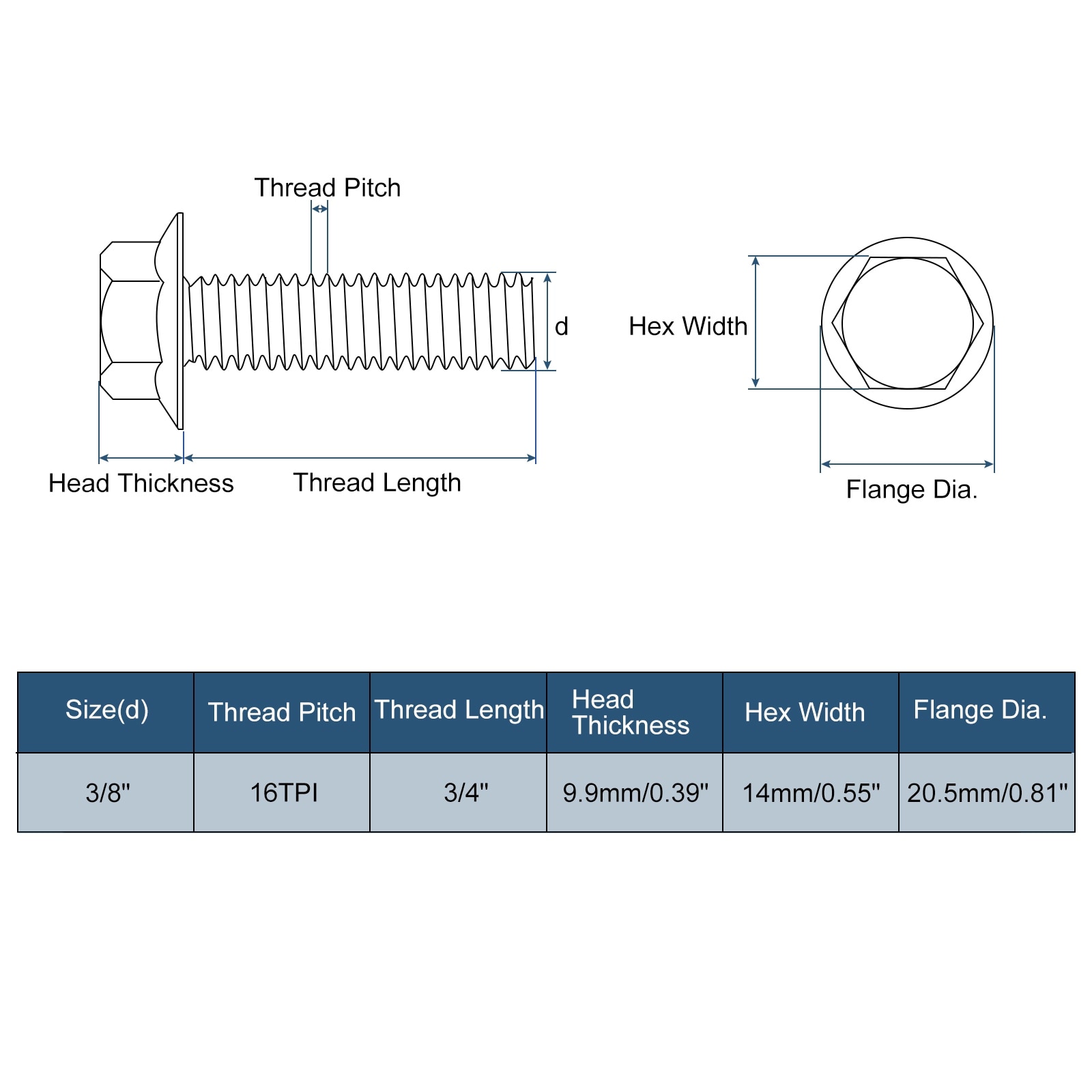 Flanged Hex Head Bolts, Flange Hexagon Screws, Flange Hex Drive Screws for Machinery Industry Home Appliances