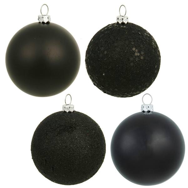 Vickerman 353172 - 10" Black 4 Finish Matte / Shiny / Sequin / Glitter Ball Christmas Tree Ornament (set of 4) (N592517DA)