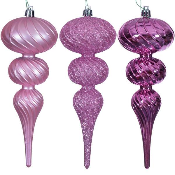 Vickerman 732342 - 8" Pink Swirl Finial Christmas Tree Ornament Assortment (6 Pack) (N230179D)