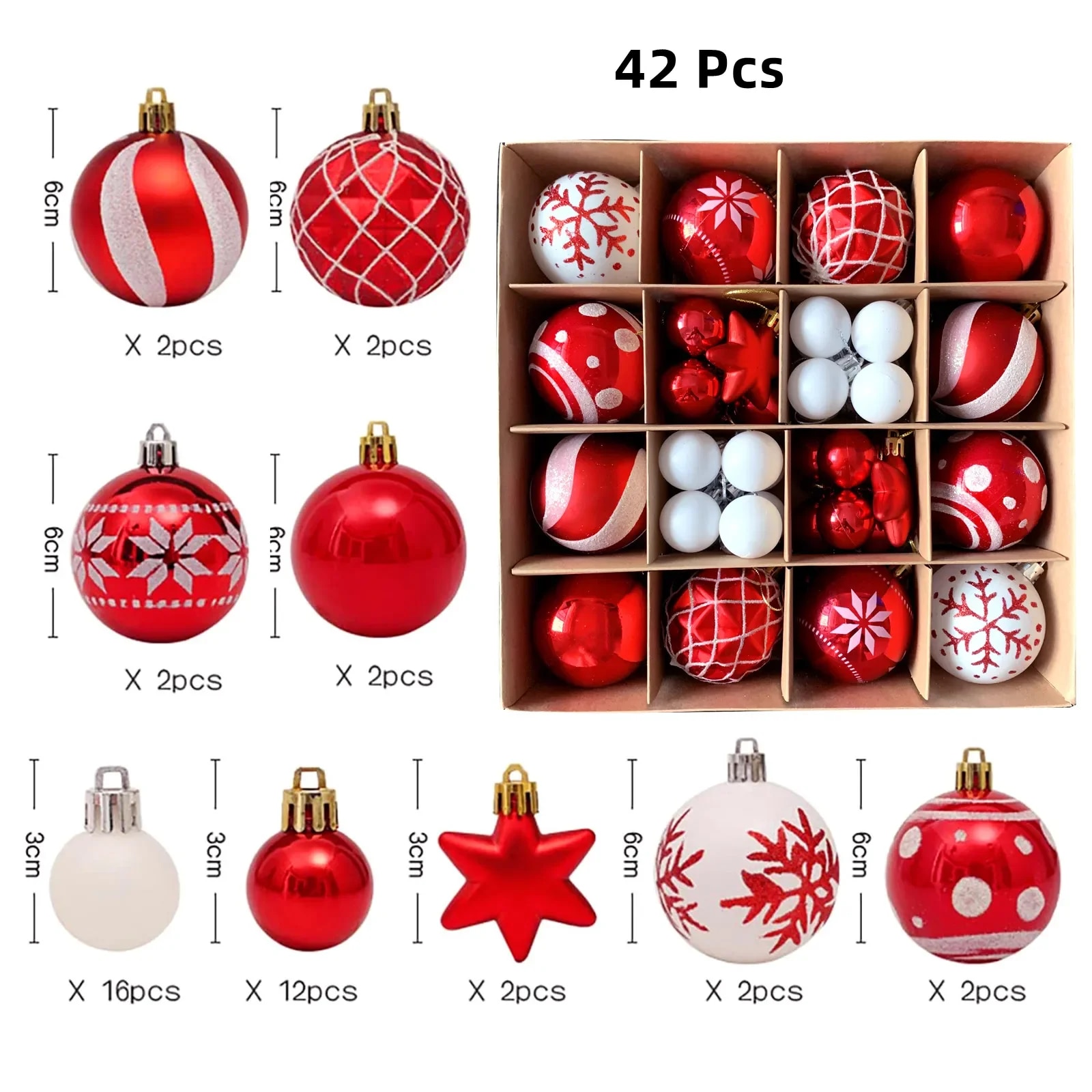 42Pcs Christmas Ball Ornaments Plastic Shatterproof Xmas Baubles Set Tree Decorations 3 6cm B