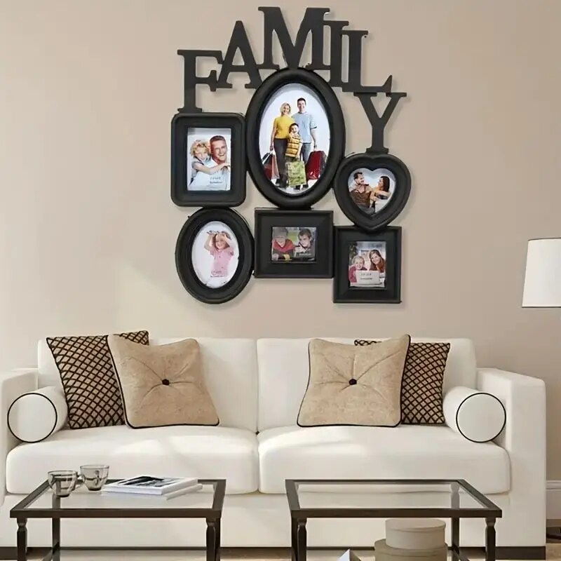 Family Photo Frame Wall Hanging: 6 Multi Sized Pictures Holder Display Home Decor Gift For Halloween, Thanksgiving, Ch white