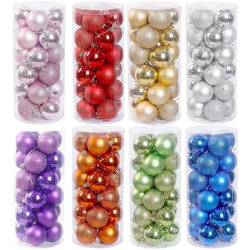 1 Box Xmas Balls Tree Ornaments Hanging Pendants Home Party Decor 2023 New Year Gift Noel Navidad Color: 24pcs Lake Blue