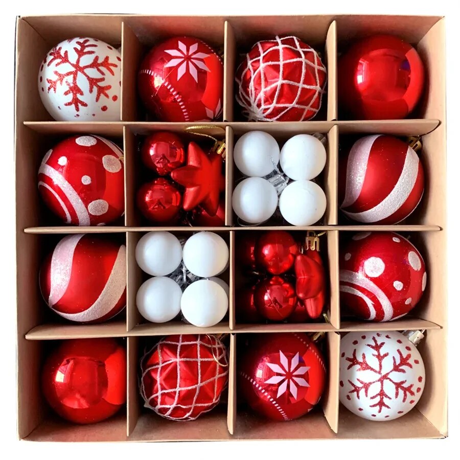 42Pcs Christmas Ball Ornaments Plastic Shatterproof Xmas Baubles Set Tree Decorations 3 6cm D