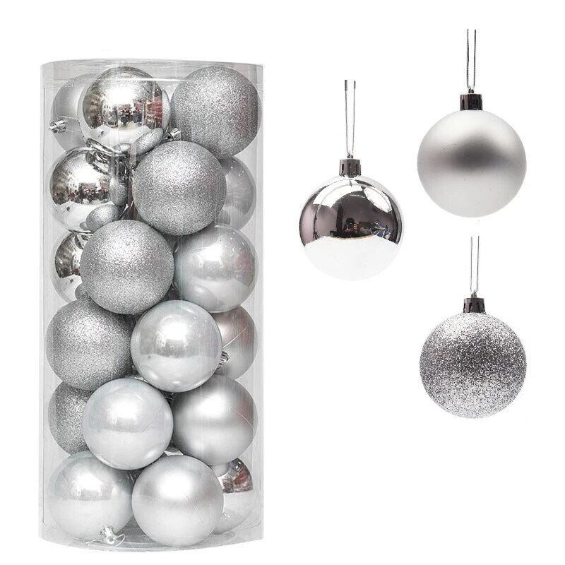 1 Box Xmas Balls Tree Ornaments Hanging Pendants Home Party Decor 2023 New Year Gift Noel Navidad Color: 24pcs Silver