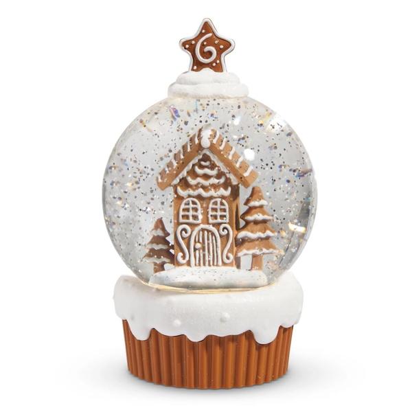 RAZ Imports 50199 - 7.75" Lighted Gingerbread Village Cupcake with Swirling Glitter (4400767) Christmas Glass Globes