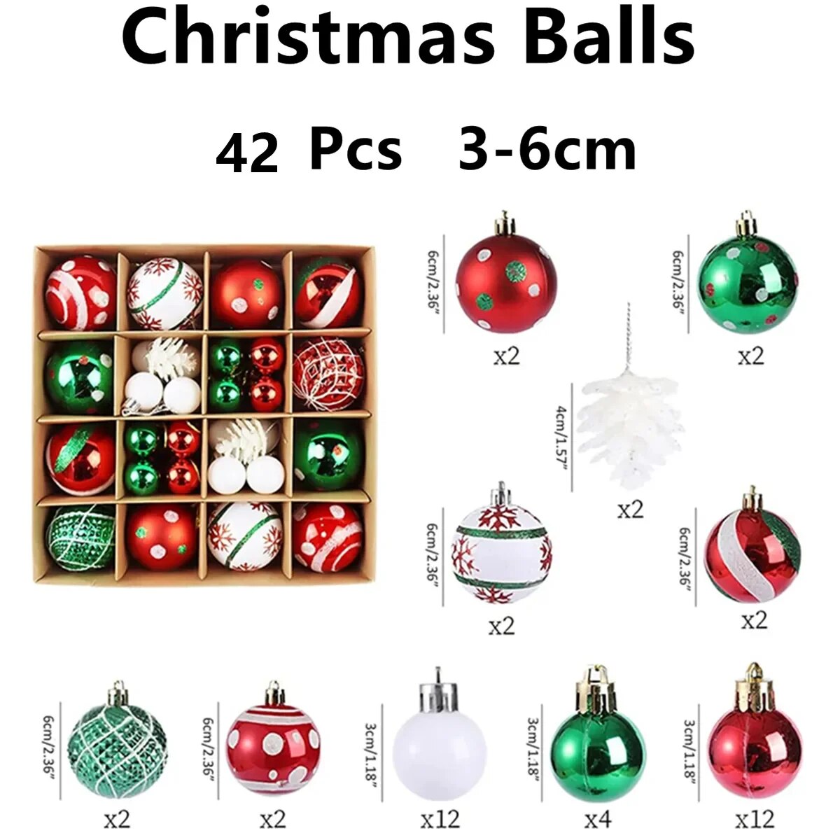 42Pcs Christmas Ball Ornaments Plastic Shatterproof Xmas Baubles Set Tree Decorations 3 6cm F 3 6CM