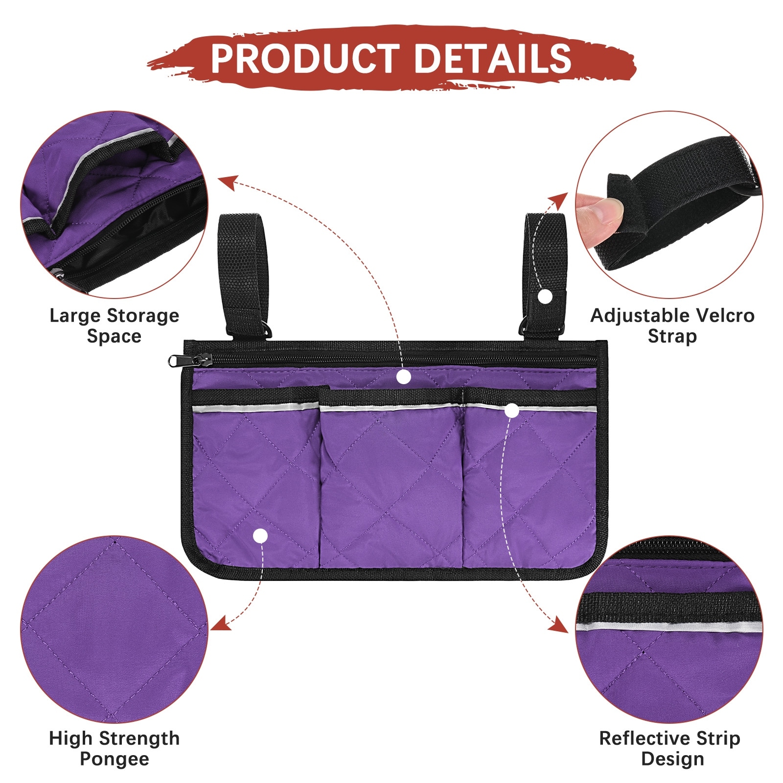 1-Pack Beach Chair Armrest Bag, Reflective Strip Chair Organizer [Purple]