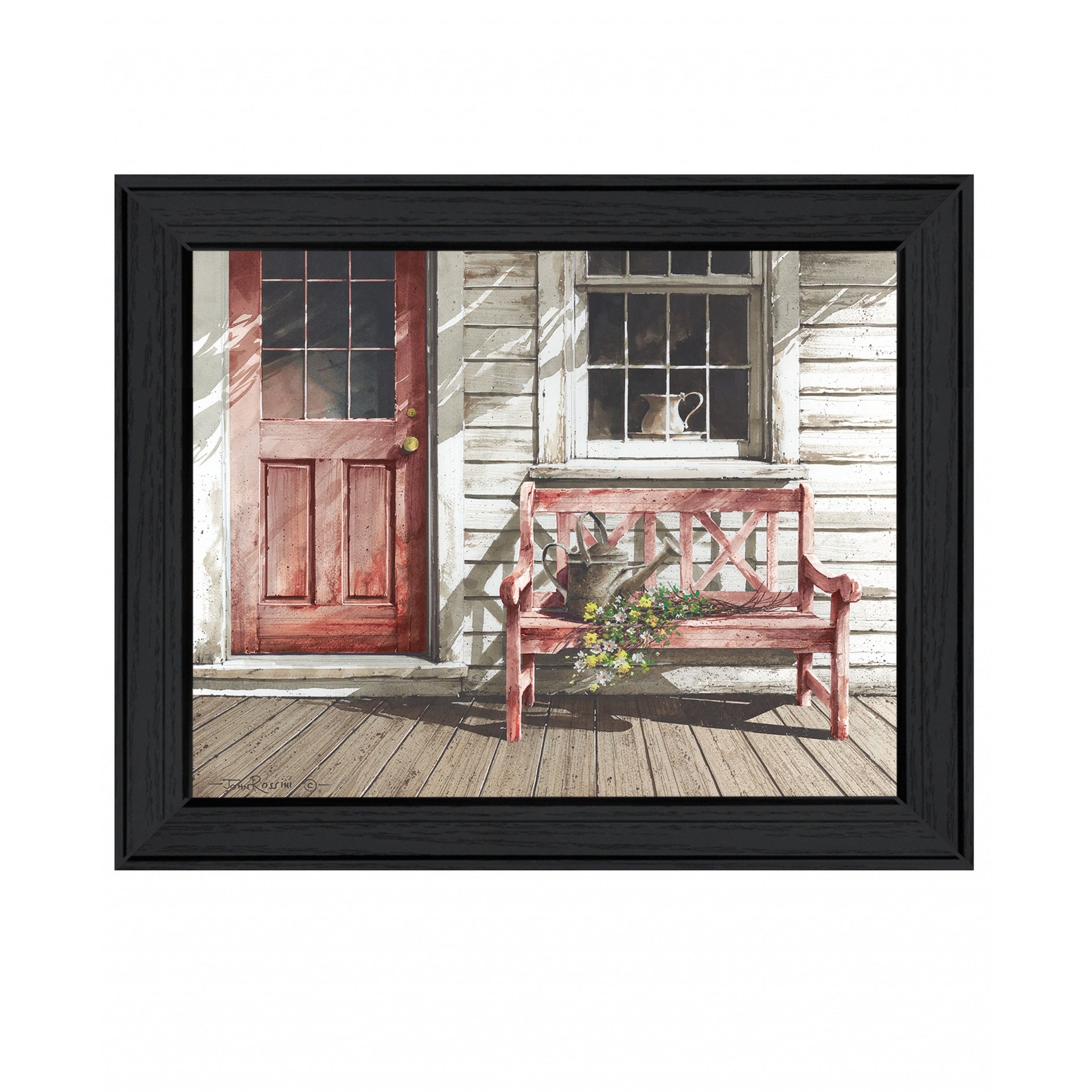 Red Canoe Lodge 1 Black Framed Print Wall Art
