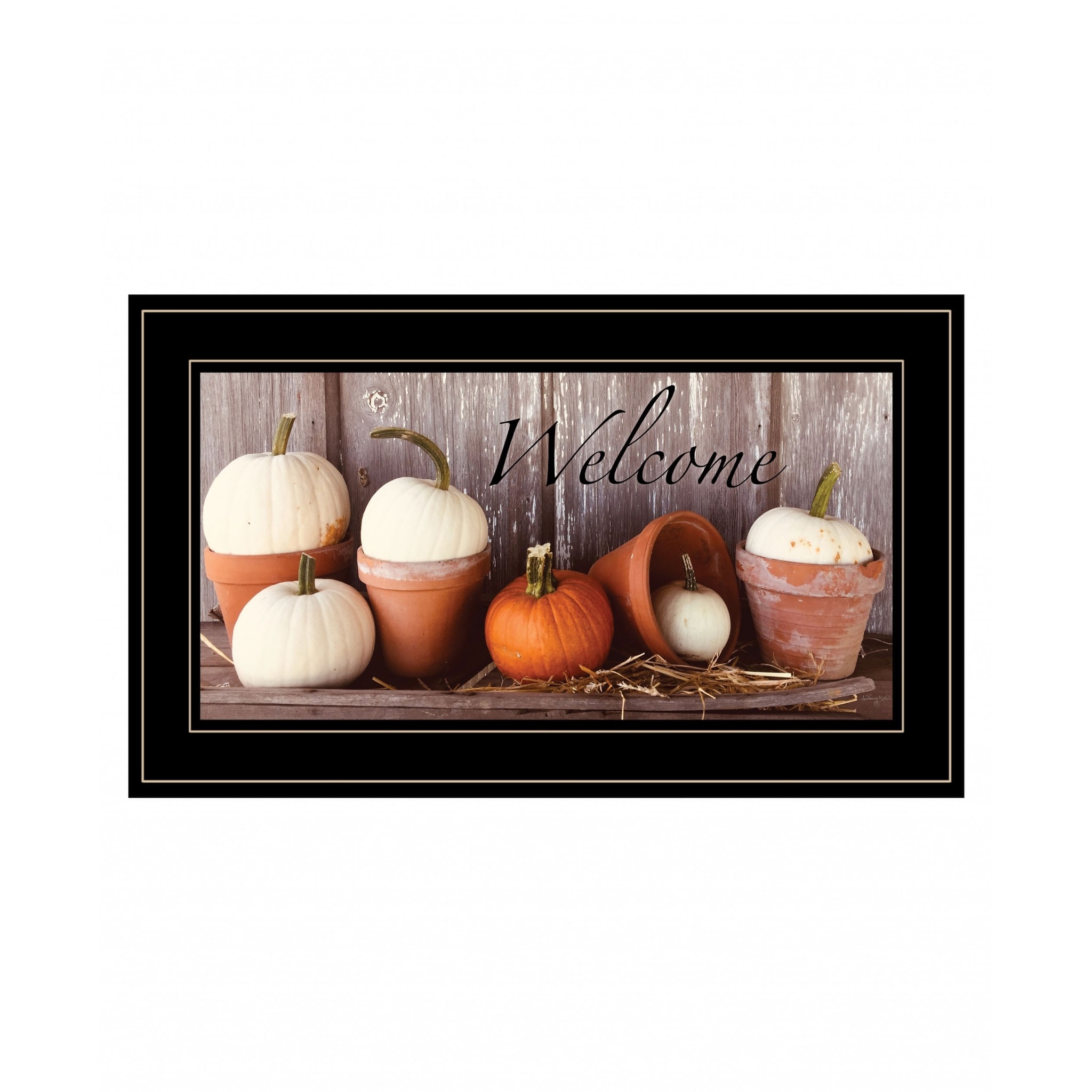 Welcome Pumpkin Shelf 2 Black Framed Print Wall Art
