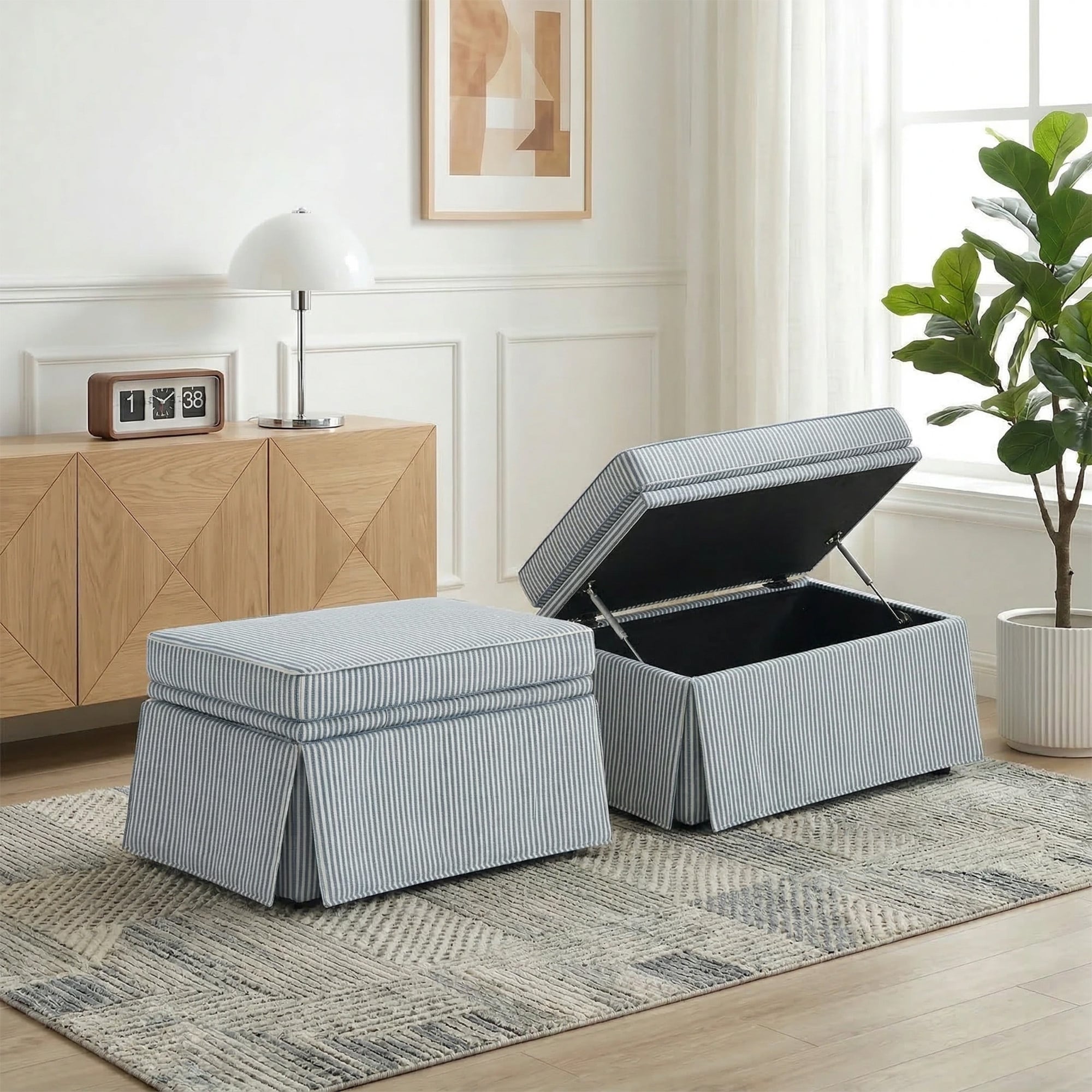 2 Set Rectangle Chenille Upholstered Storage Ottoman