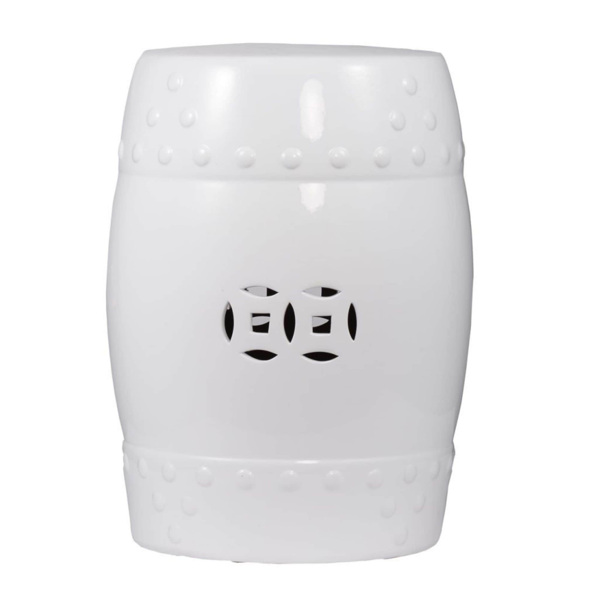 Barrel Shaped Ceramic Garden Stool - 18" - White