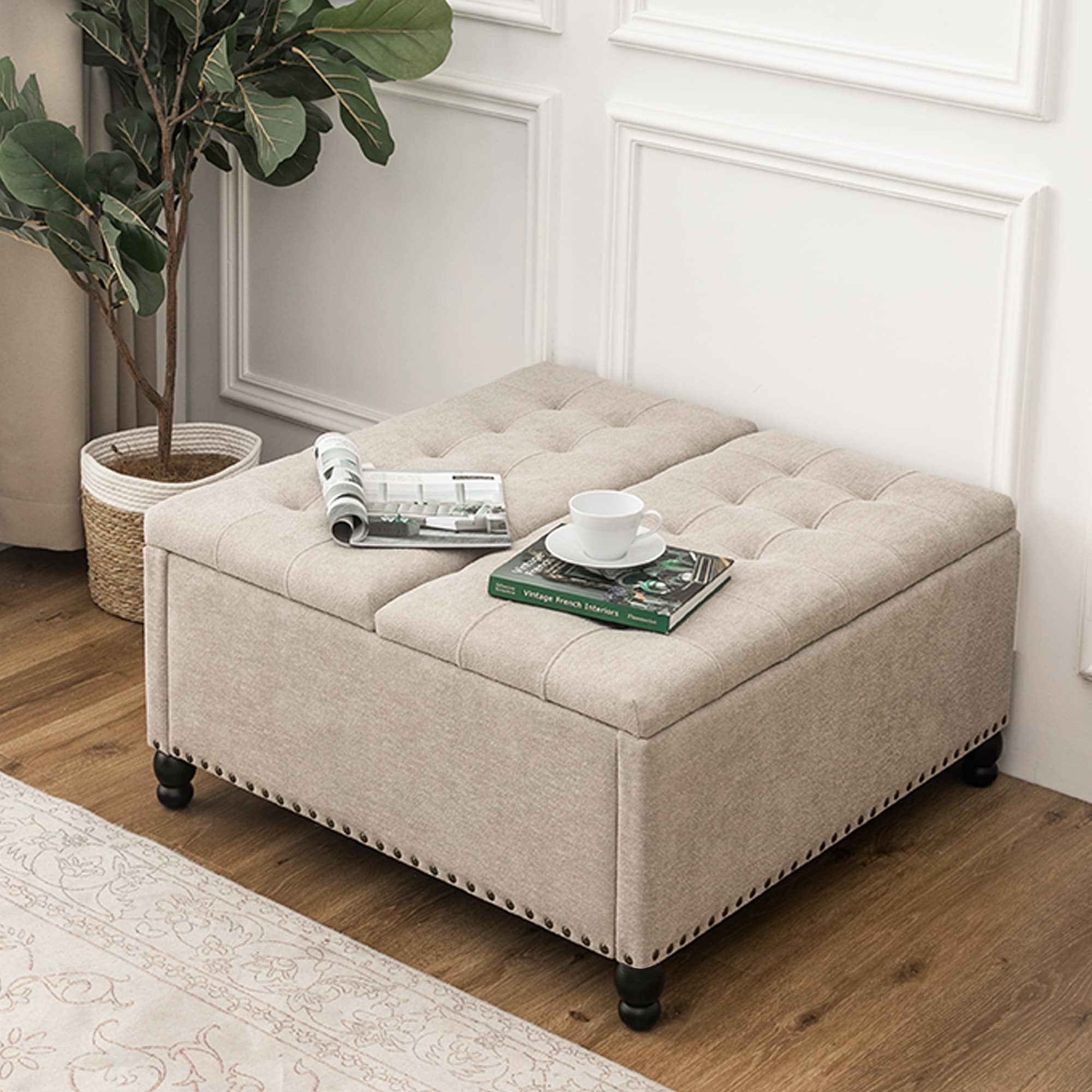 Besmore 34-inch Natural Tufted Cocktail Ottoman Recessed Center Tray