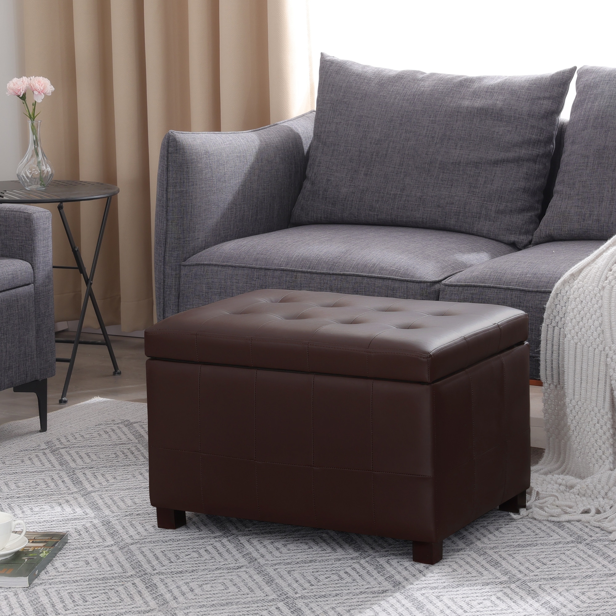Adeco 24'' Faux Leather Storage Ottoman Bench with Tufted Top