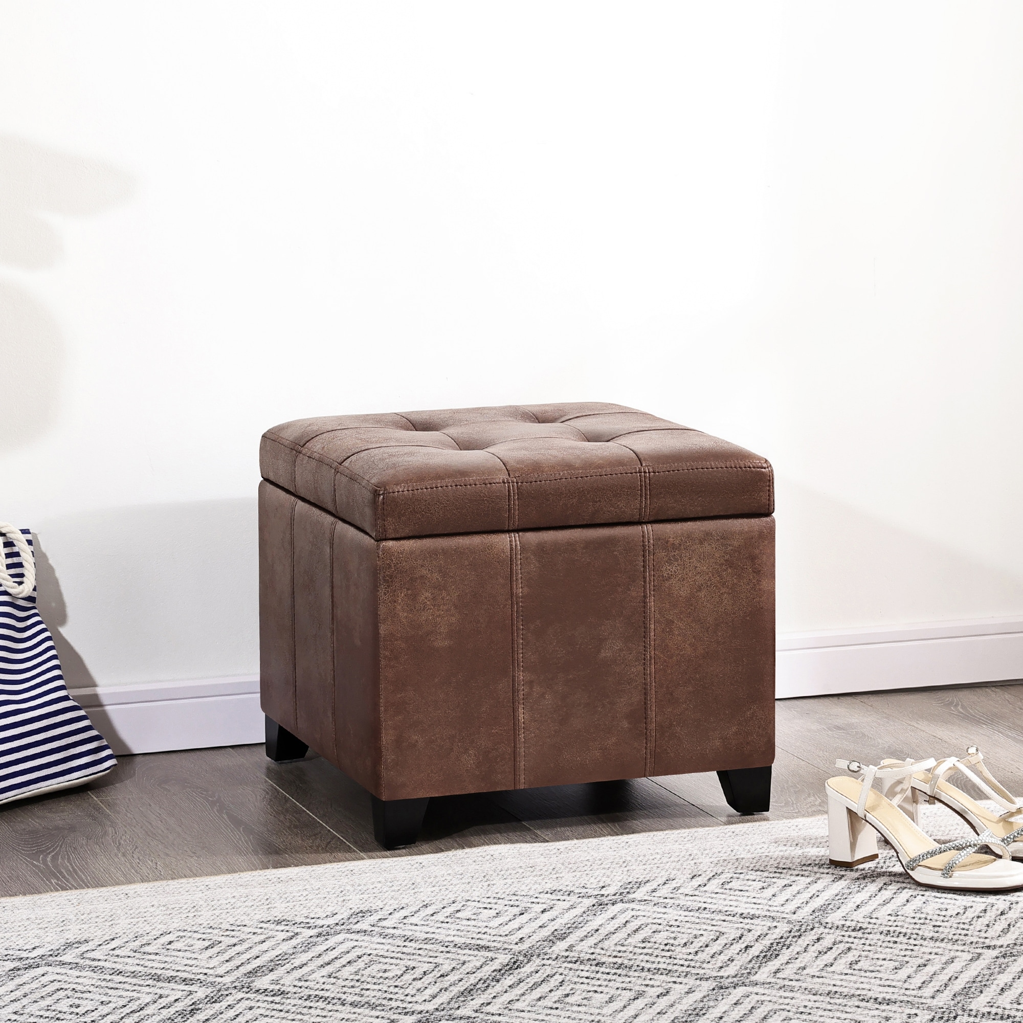 Adeco Upholstered Tufted Faux Leather Storage Ottoman