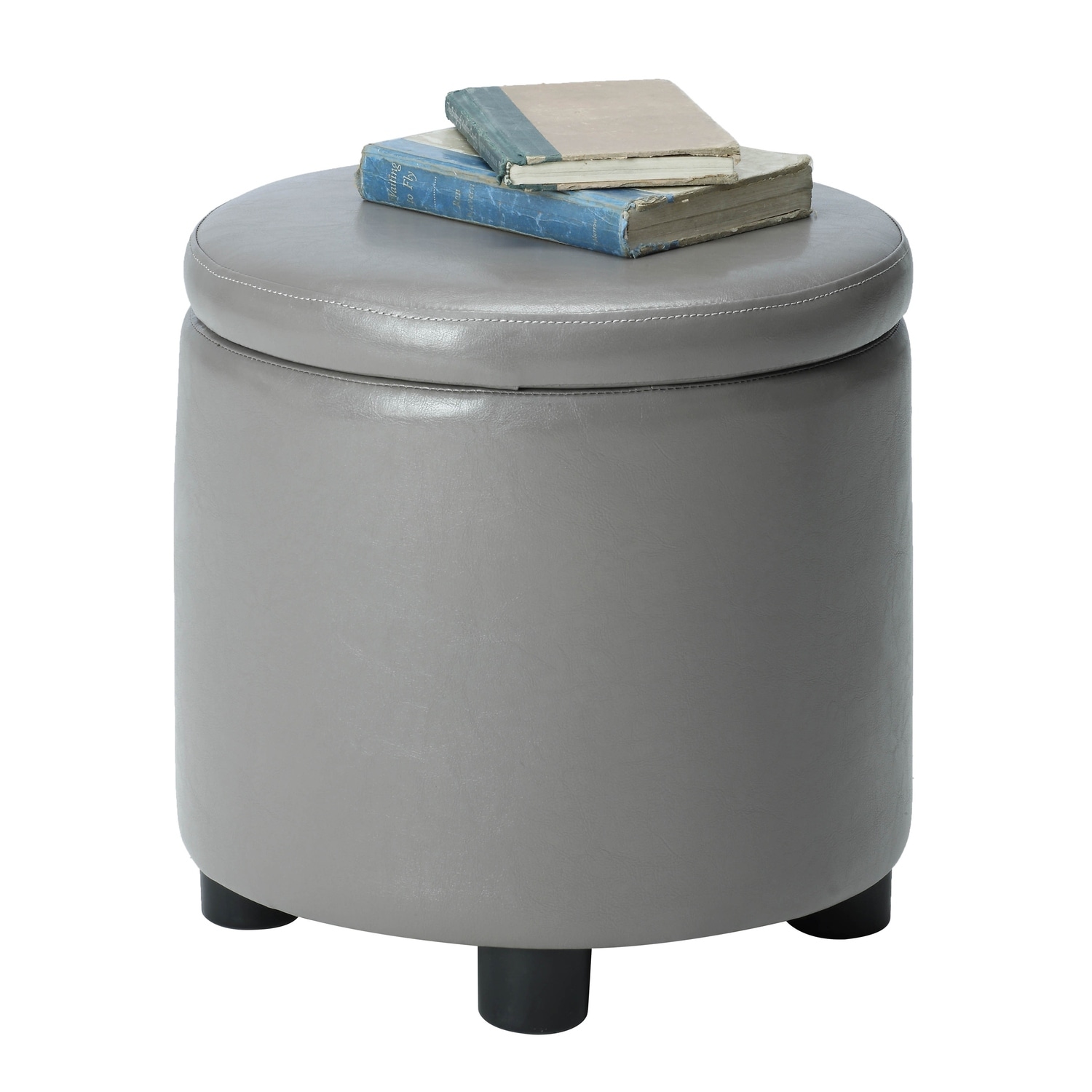 Contemporary Round Accent Storage Ottoman with Reversible Tray Lid for Small Spaces and Multipurpose Organization