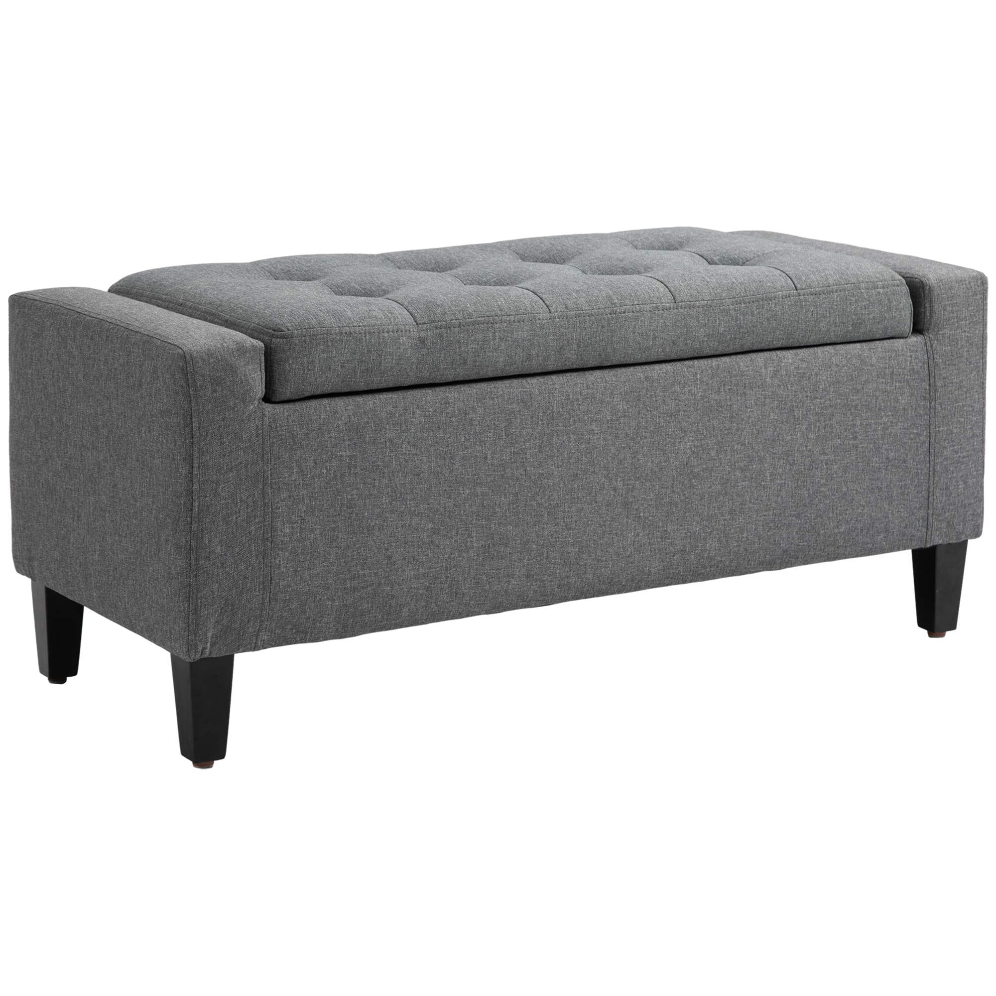 Linen Upholstered Storage Bench with Lift Top and Button Tufted for Living Room, Gray
