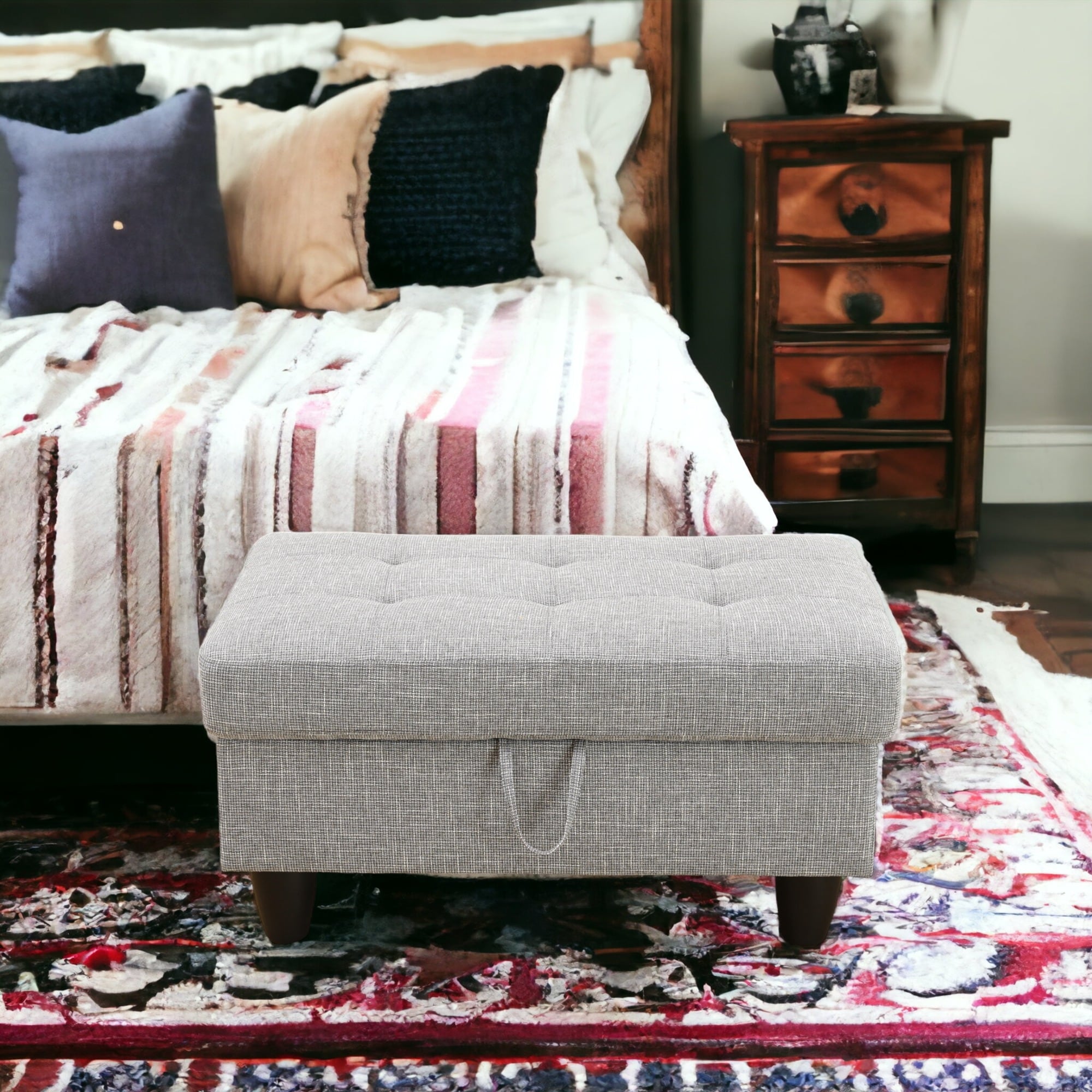 KISRAIS 34" Wide Upholstered Storage Ottoman