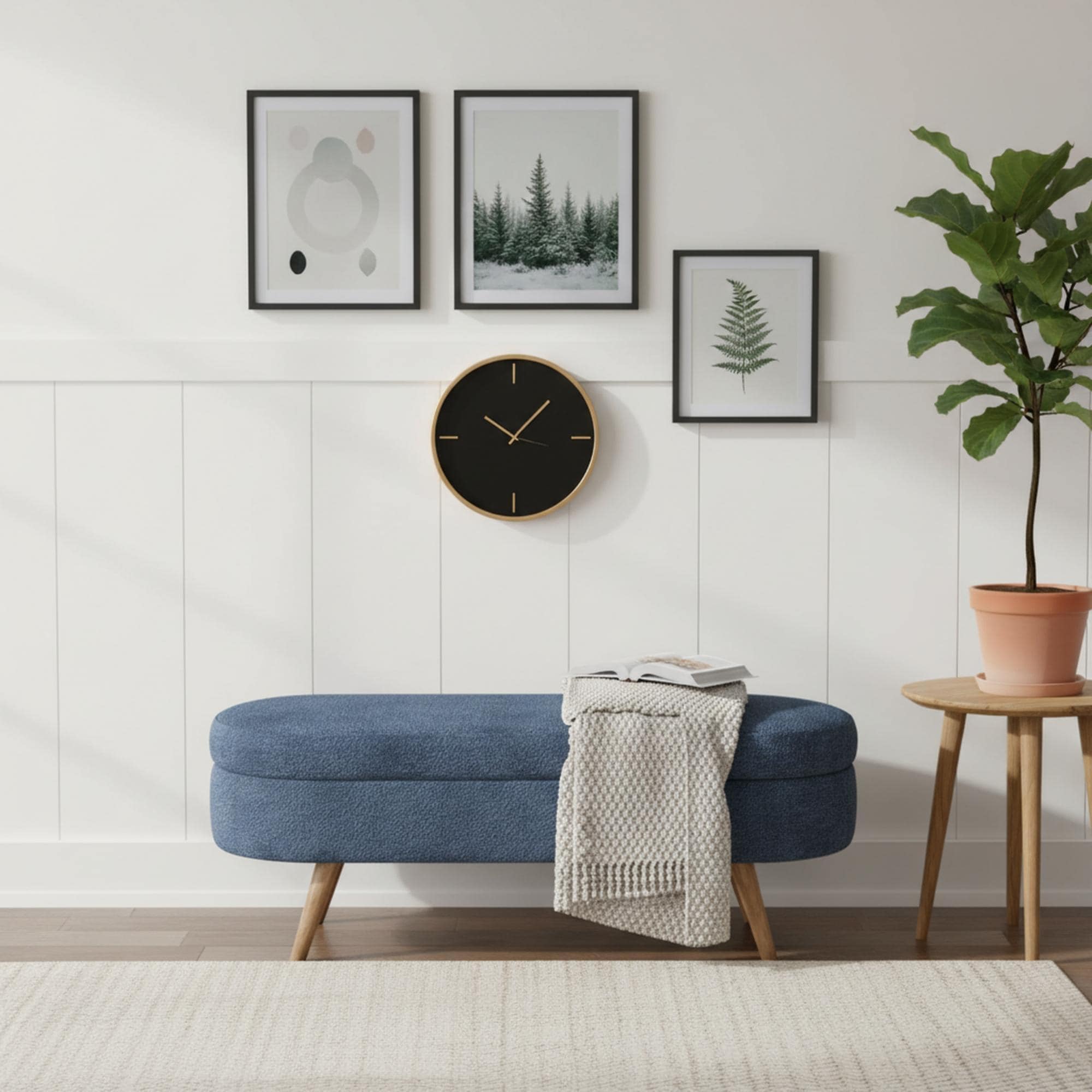 Homy Casa 43.5 in. Upholstered Storage Ottoman Bench with Rubber Wood Legs, Fabric Accent Footstool for Bedroom or Living Room