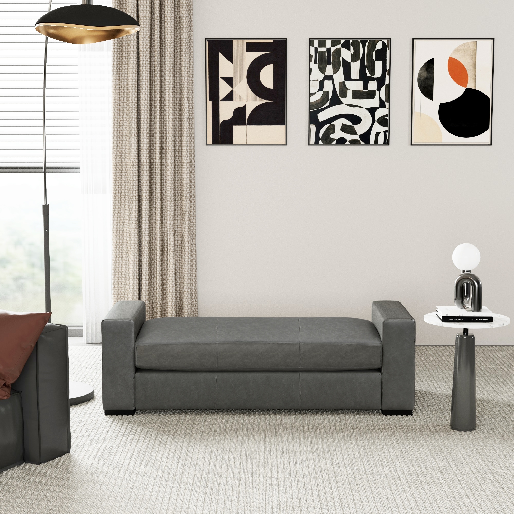 Leather Ottoman End of Bed Bench with Armrests, Entryway Chair Ottoman, Extra Seat Footrest Tabletop