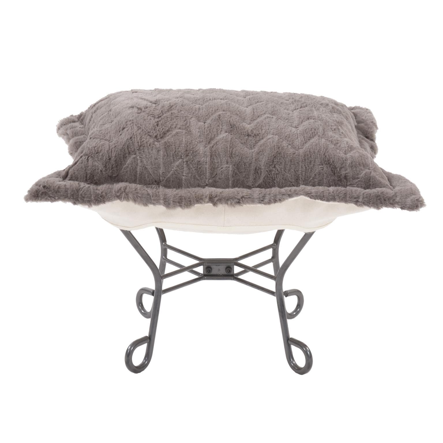 Allan Andrews Scroll Puff Ottoman with Titanium Frame & Cover, Angora Collection