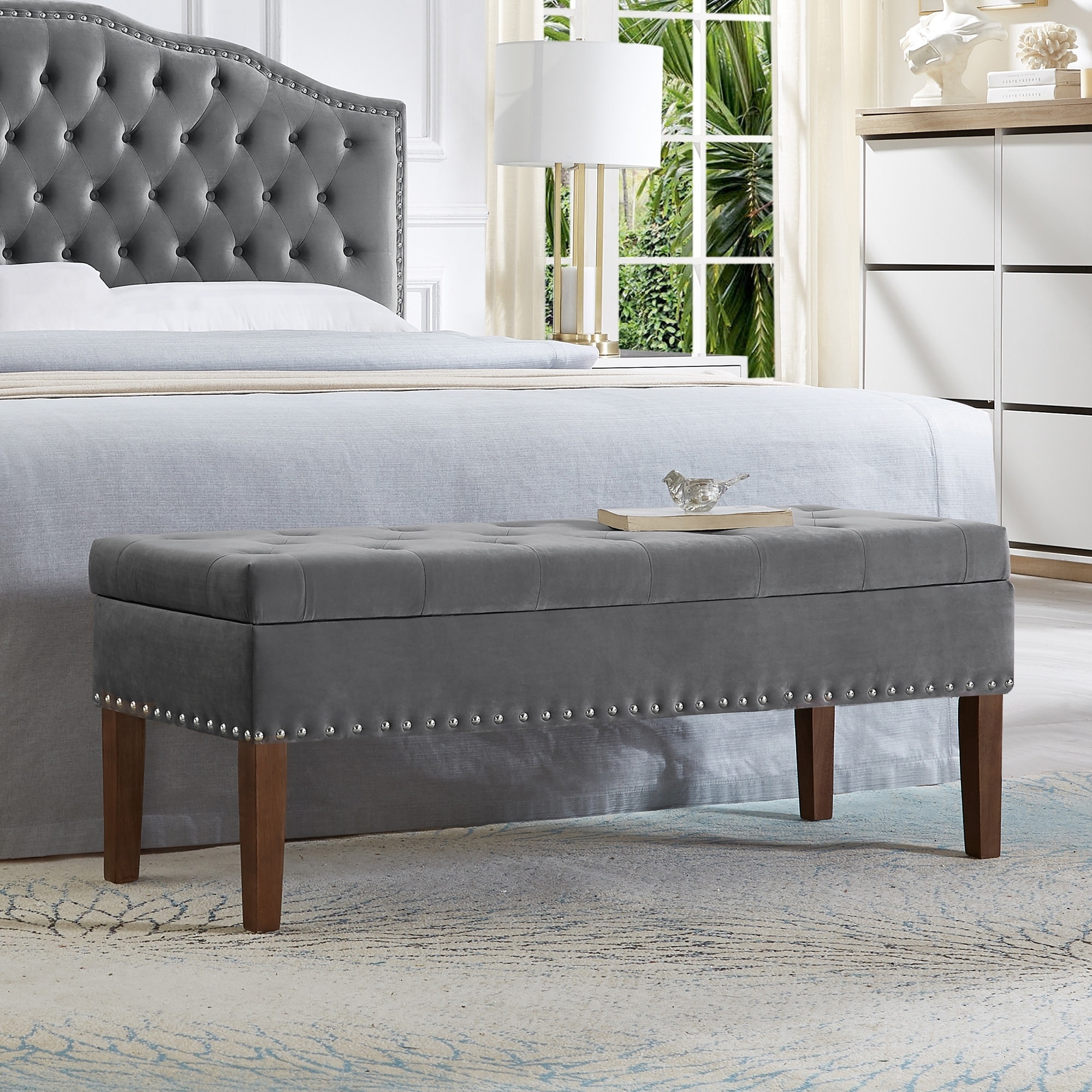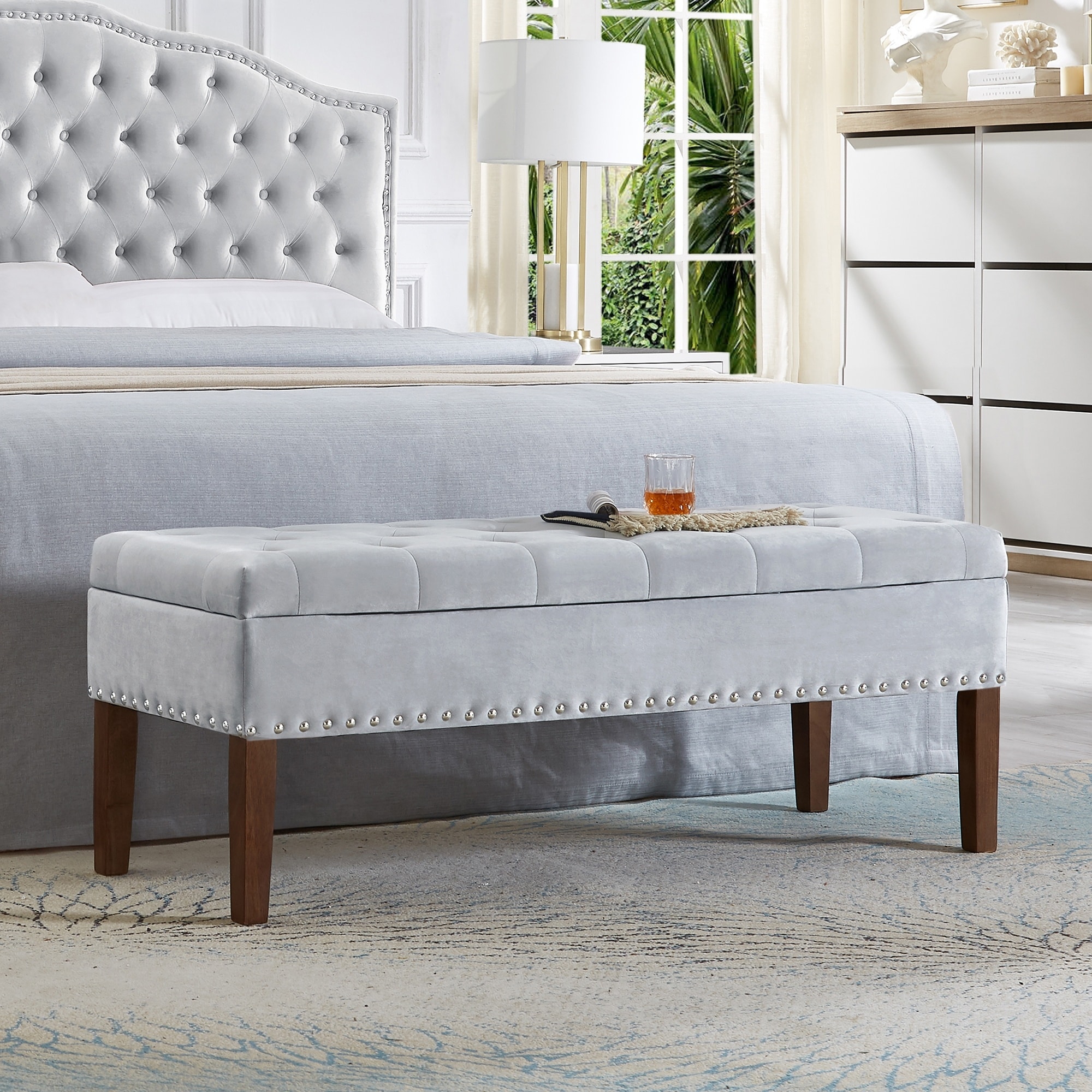 Tufted Bench with Storage Minimalist Nailheads Bench,Modern Bedroom Bench