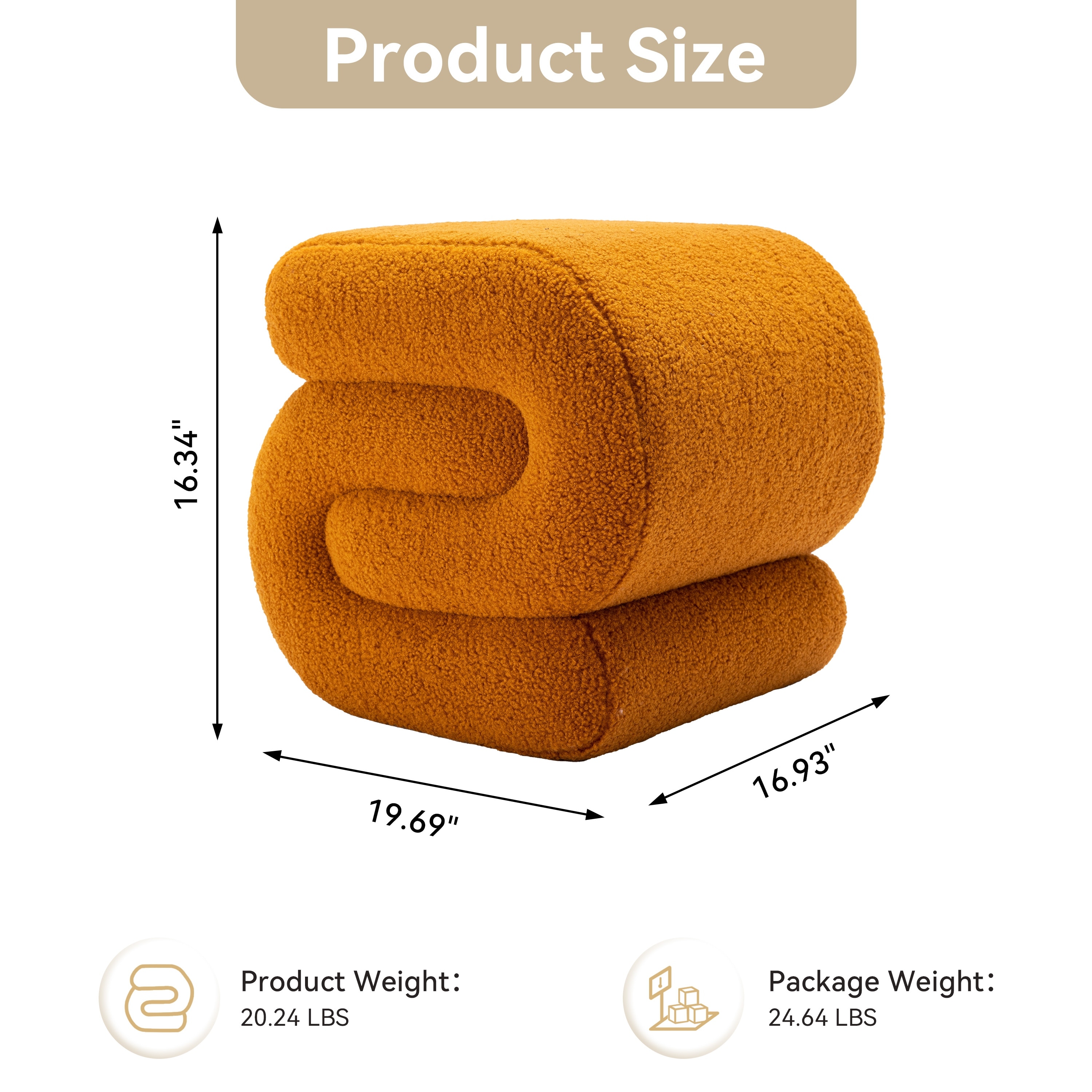 15.7" Cream White Round Footstool with Thick Foam Padding and Soft Teddy Fleece Cover