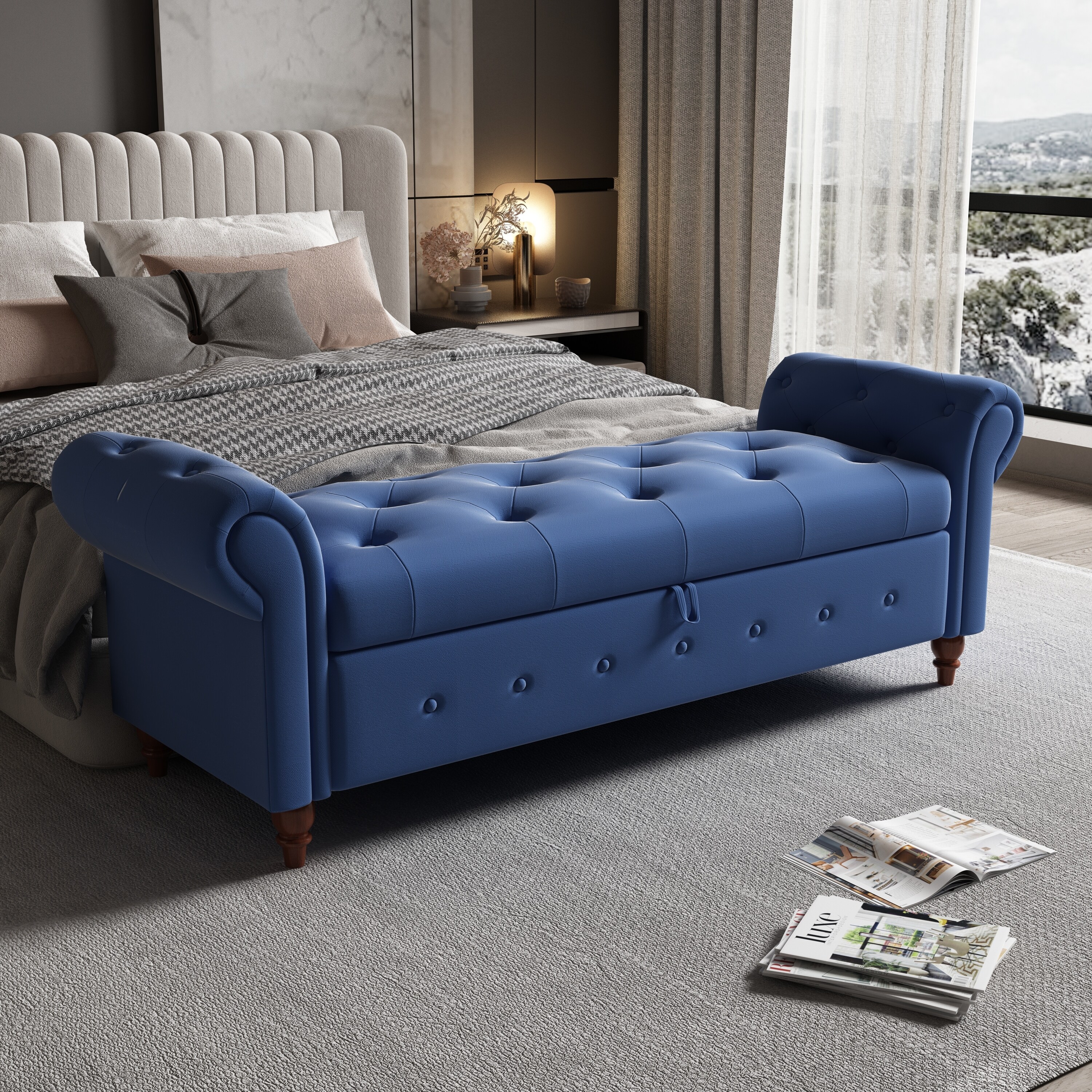 Bedroom Storage Bed Bench with Button Tufted, Large Upholstered Ottoman Benches for Bedroom, Living Room