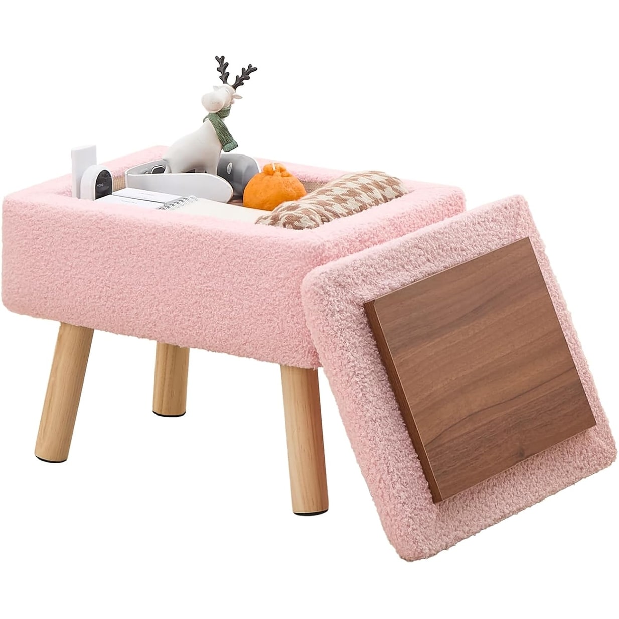 Rectangular Storage Ottoman with Teddy Fleece and Solid Wood Legs