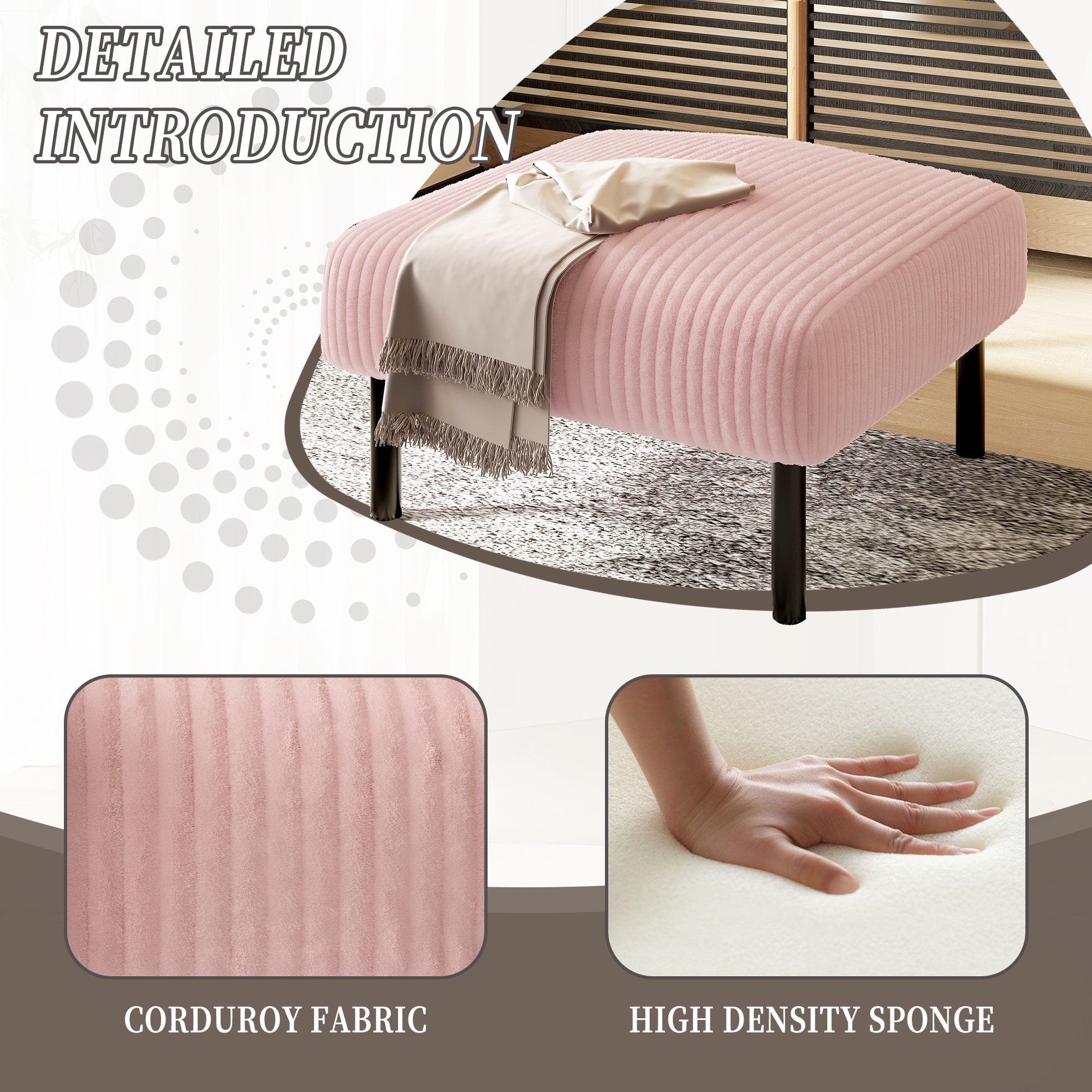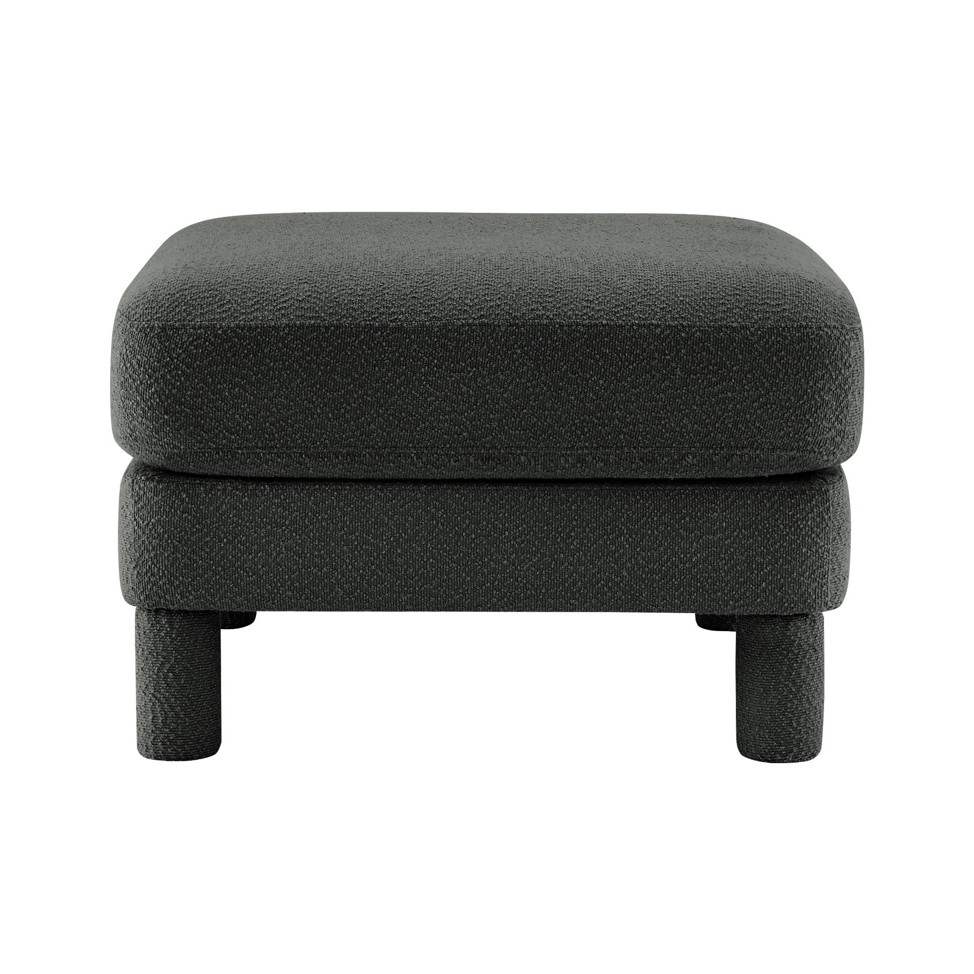 Boucle Fabric Ottoman with Wooden Legs Modern Living Room Accent