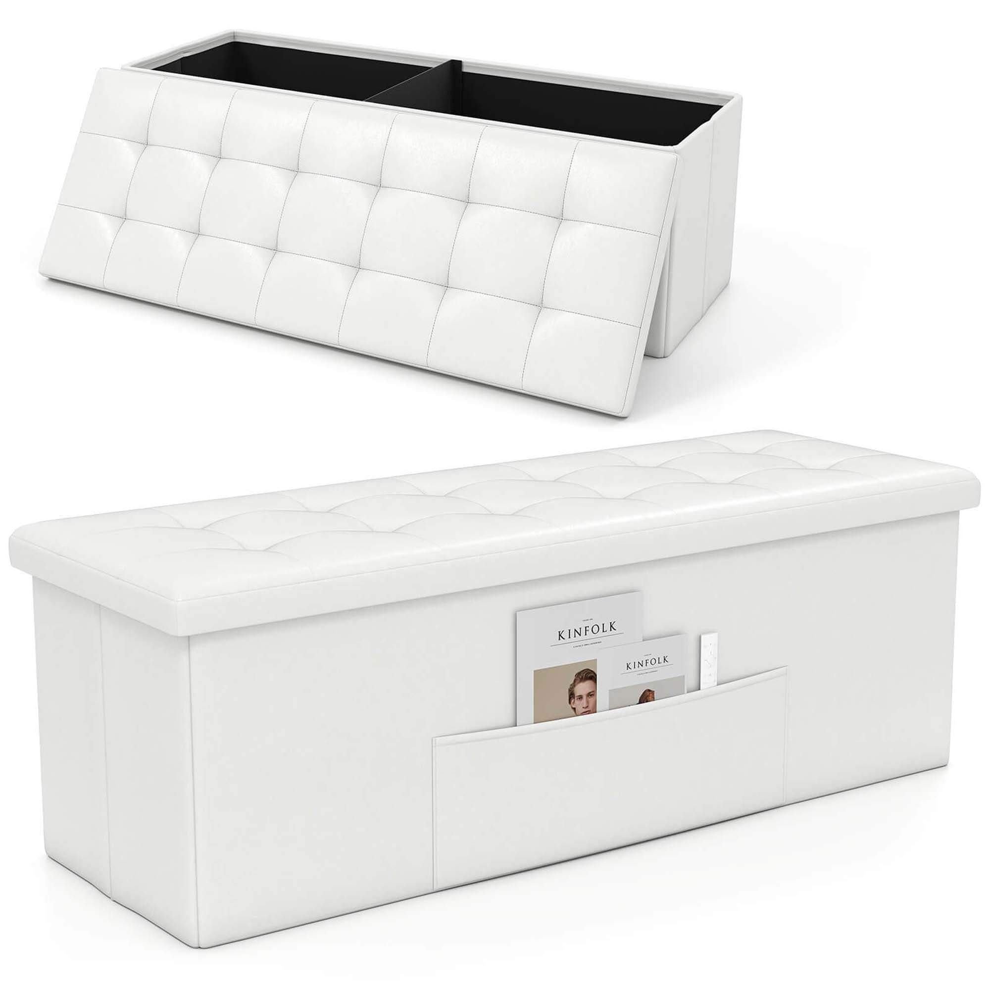 43" Folding Storage Bench Padded PU Leather Box with Side Pockets