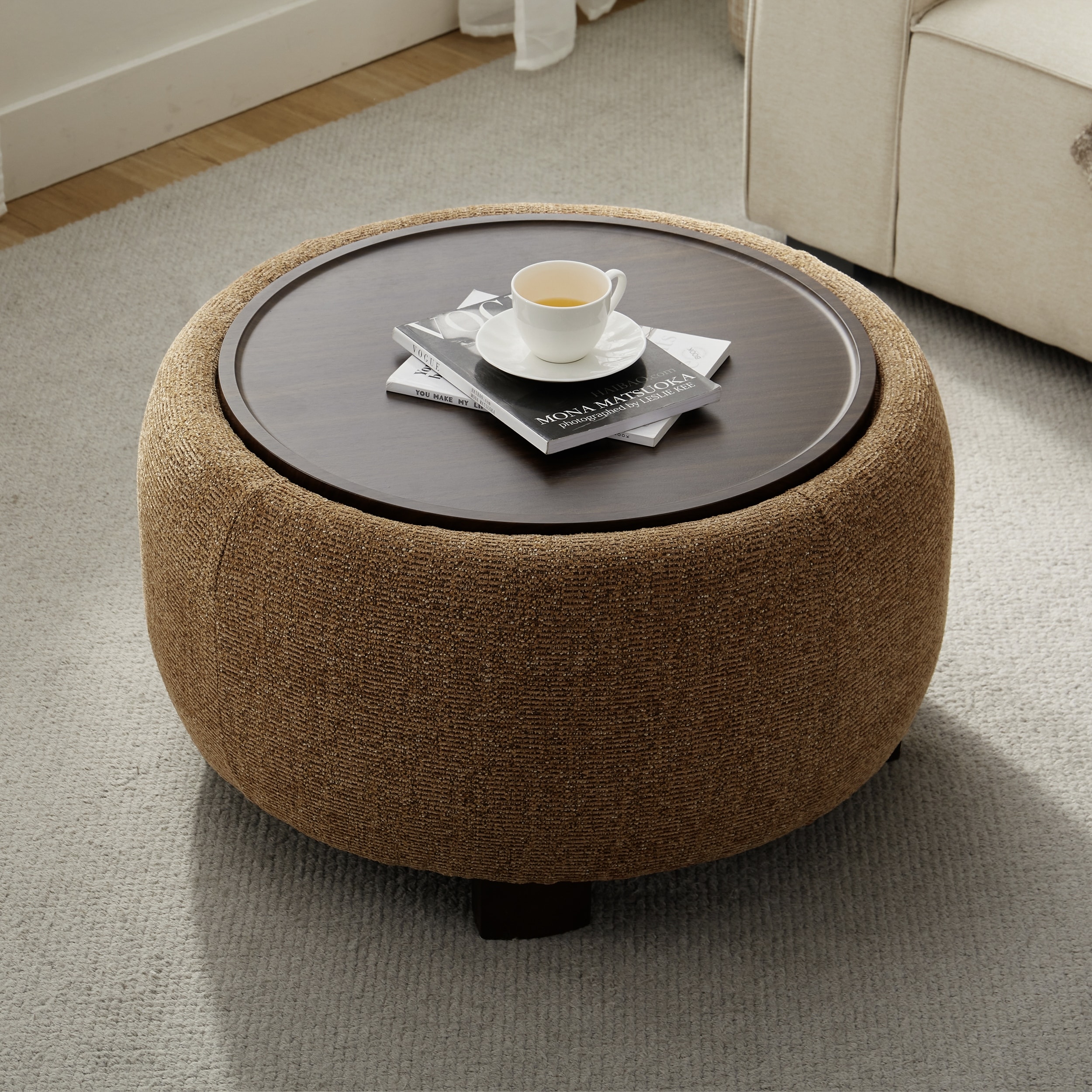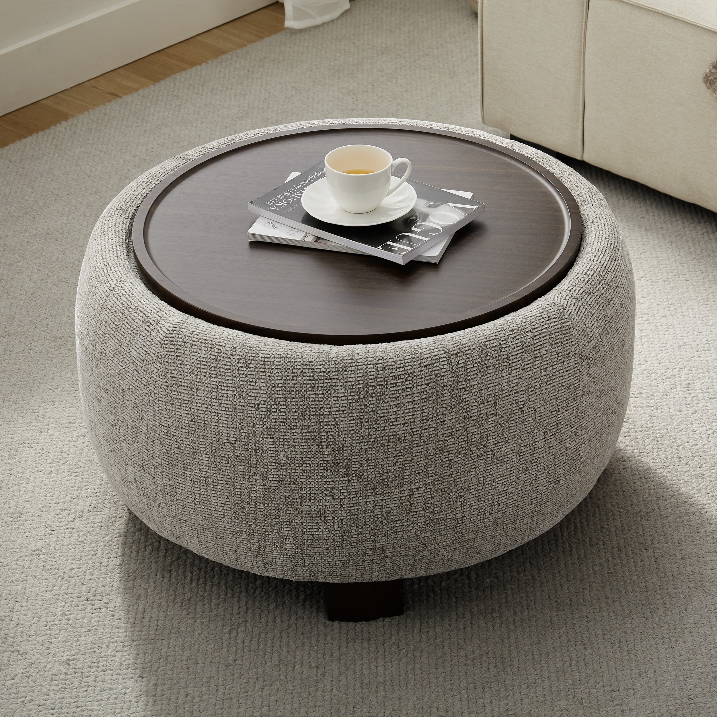 Handwoven Storage Ottoman with Rounded Wooden Base