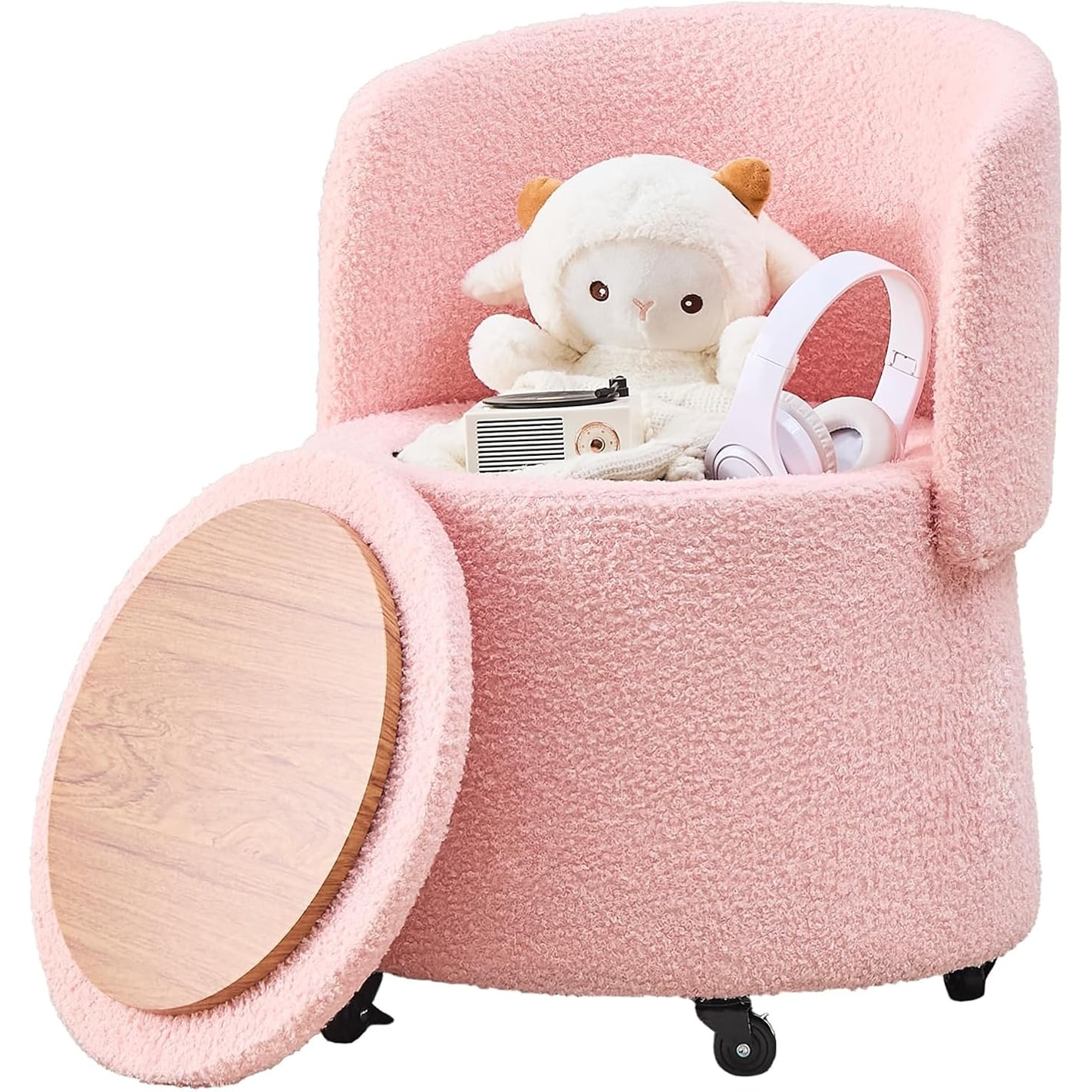 Round Storage Ottoman with Teddy Velvet and Hidden Storage Space