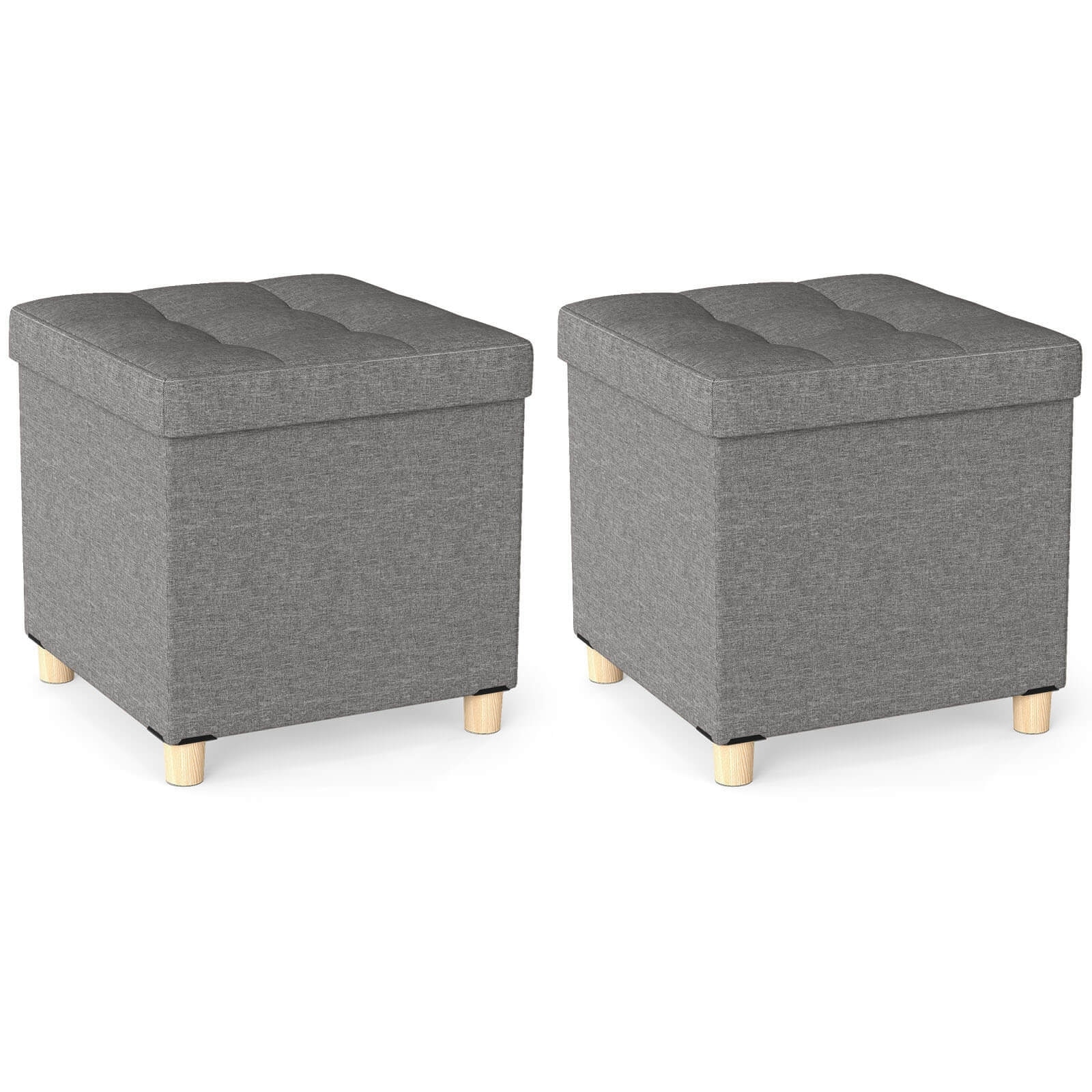Costway 1/2 PCS 18 Inches Ottoman with Storage,Tray & Rubber Wood Legs
