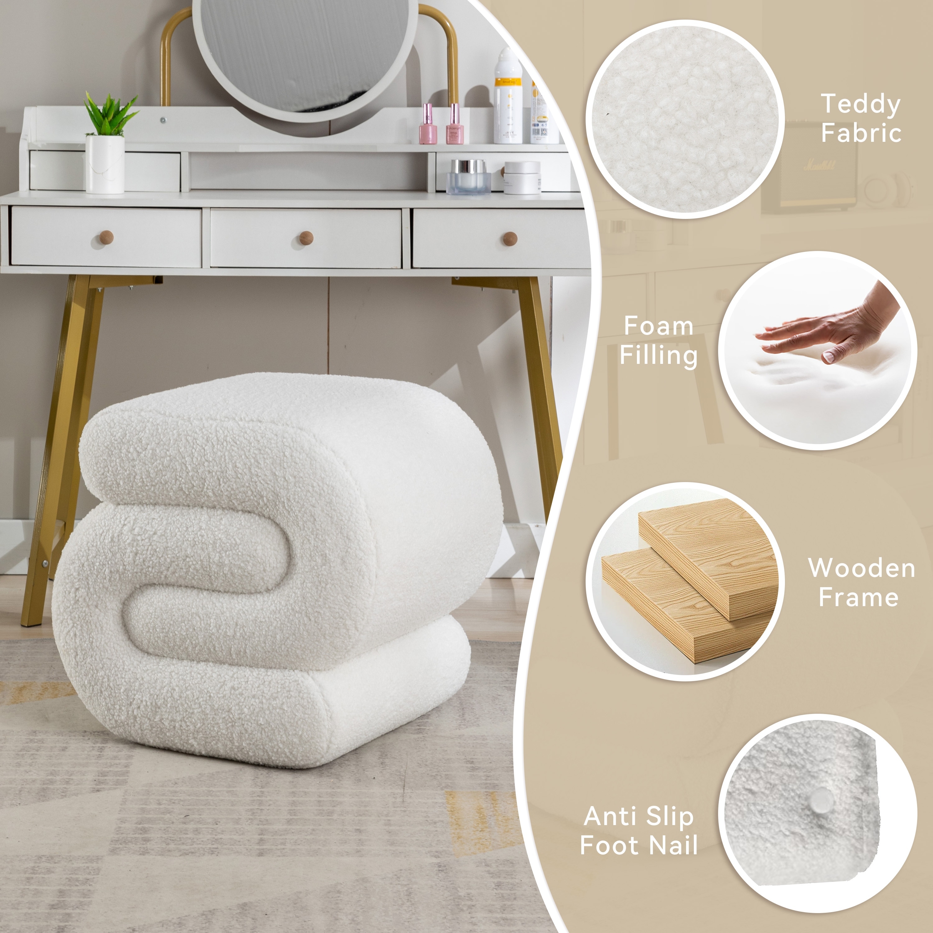 Square Pouf Plush Off Corduroy Fabric Upholstery Modern Ottoman, Footstool, NonSlip Floor Pouf, Bean Bag Chair, 1pc Sitting Pouf