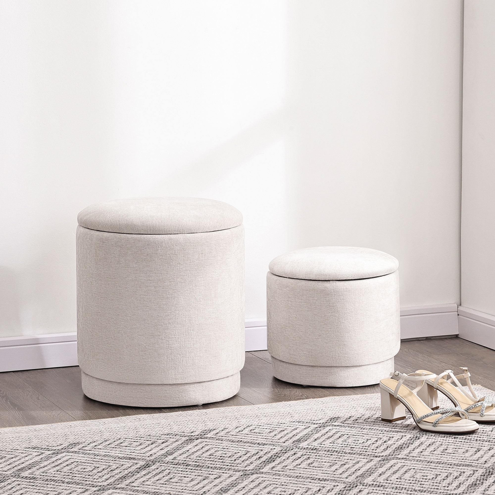 Adeco Set of 2 Round Fabric Storage Ottoman with Removable Lids