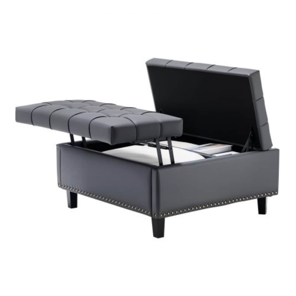 Tufted Lift Top Storage Ottoman Elegant Gray PU Leather with Hidden Compartment Child Safe Hinges
