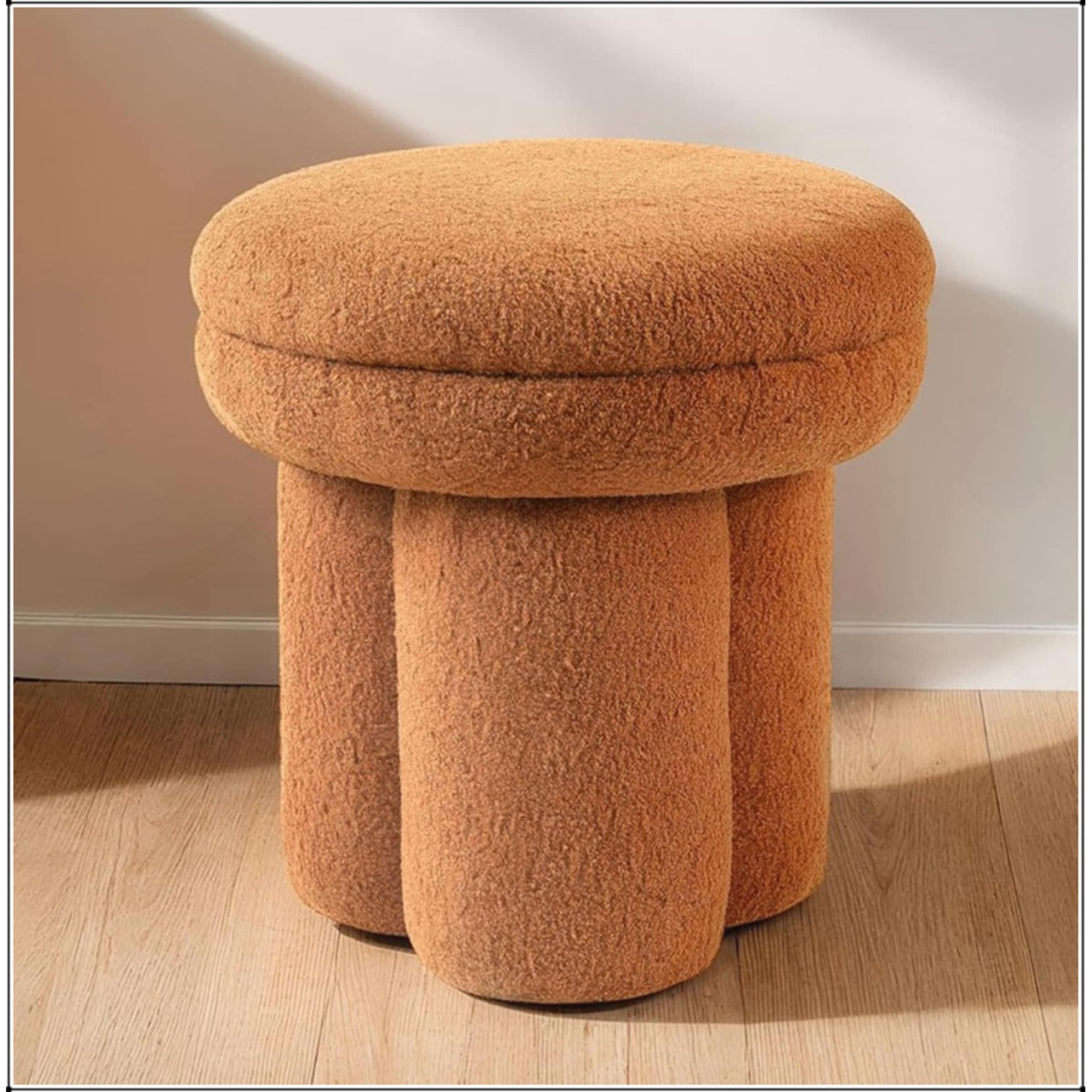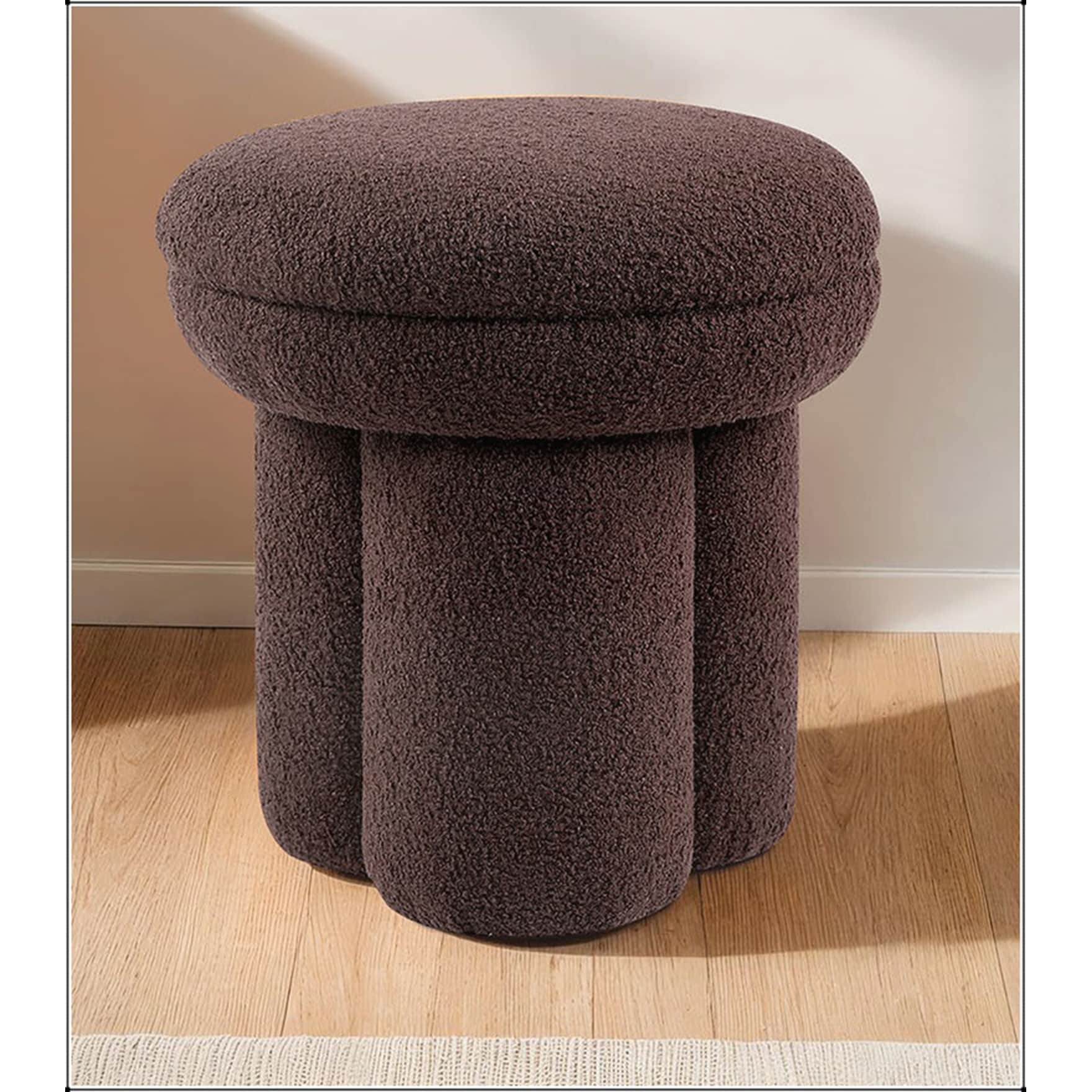 Round Top Teddy-like Fabric Pedestal Base Mushroom Design Stool