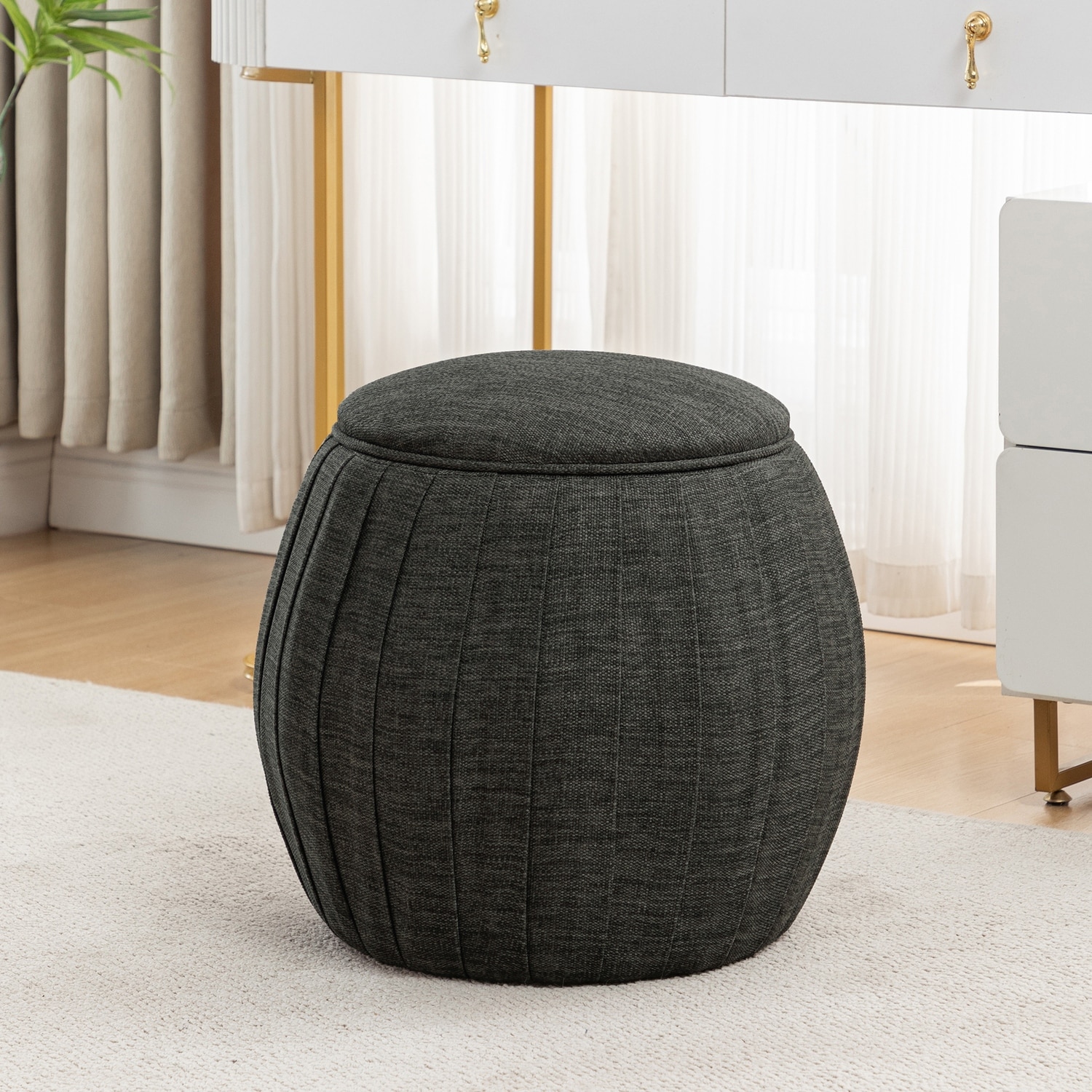 Round Accent Storage Ottoman - Upholstered Circular Ottoman with Hidden Storage for Living Room or Bedroom Decor