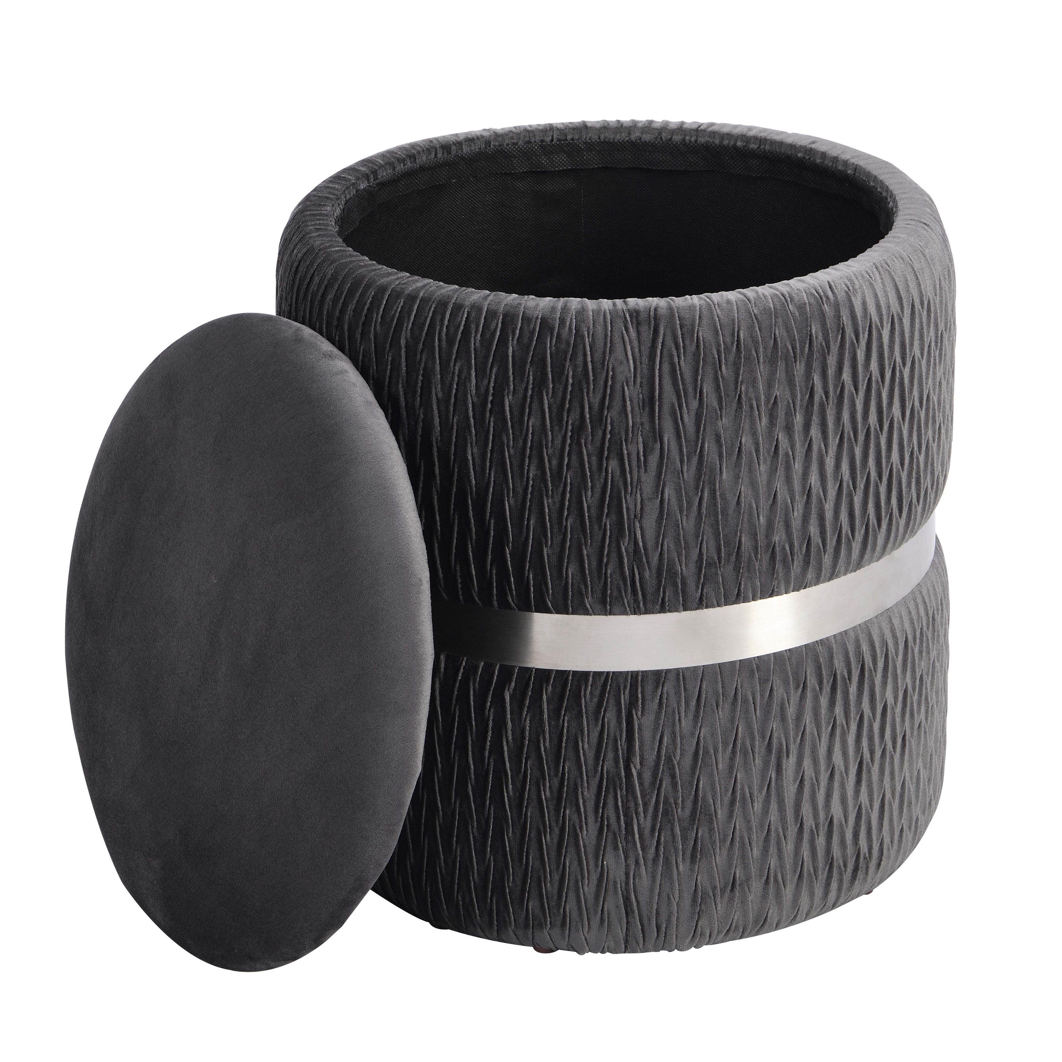 31.5"W Upholstered Round Ottoman With Reversible Lid, Velvet Storage Stool, Channel Tufted Pumpkin-shape Footstool